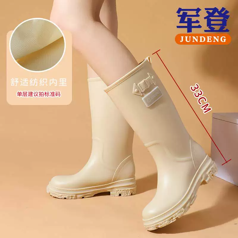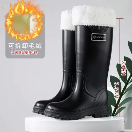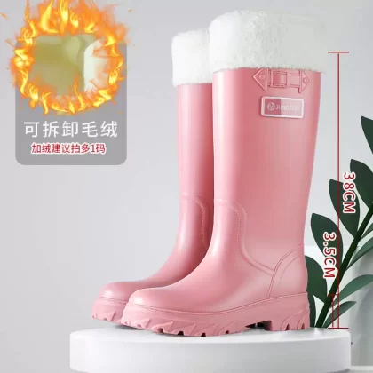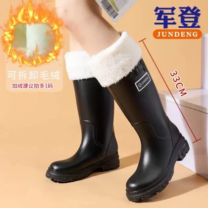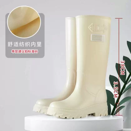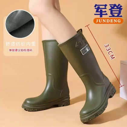 Cross -border European and American fashion versatile boots female long -heeled high -heeled rain shoes high -end women’s non -slip large size rain boots boots