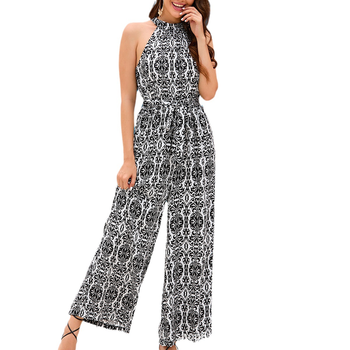 | nameOriginal | Cross-border European and American Foreign trade halter waist-tight jumpsuit summer bohemian vacation printed casual wide-leg pants women's clothing |