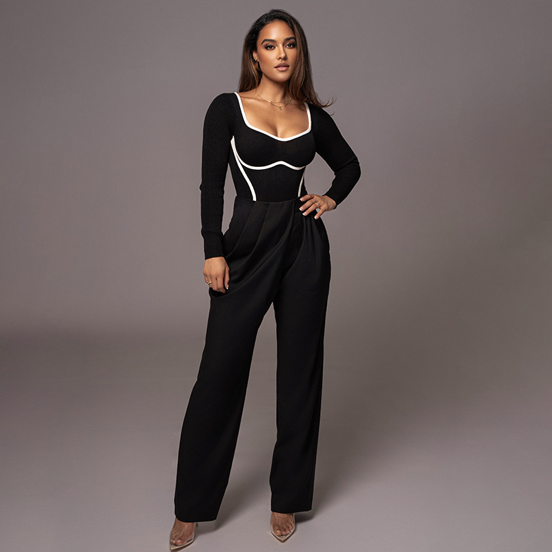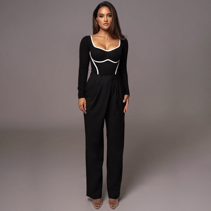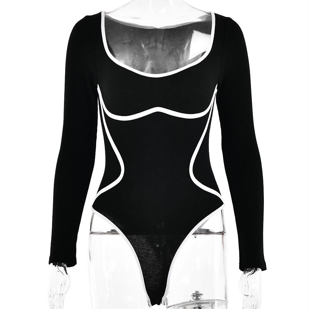 Cross-border European and American Foreign Trade Women’s 2024 Contrasting One-piece T-shirt Chest Knitted Stretch Thread Small Shirt Niche Top