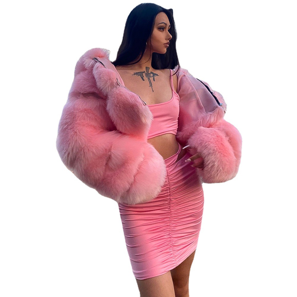 | nameOriginal | Cross-border European and American Fur Coat Short Hooded Imitation Fur Coat Imitation Fox Hair Long Sleeve Stitching Women's Coat Top |