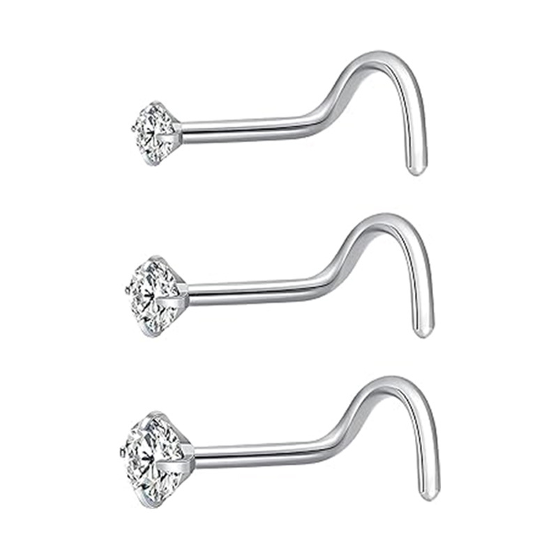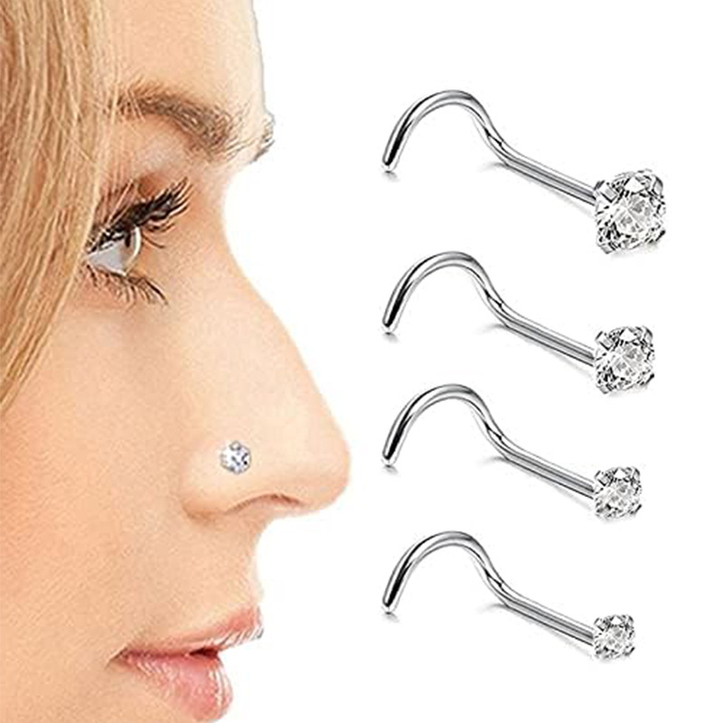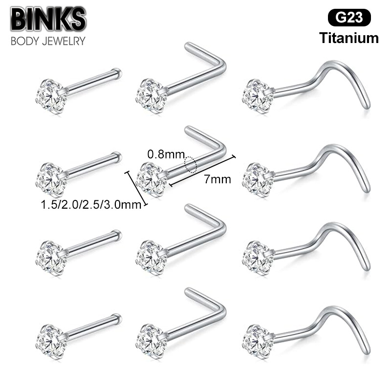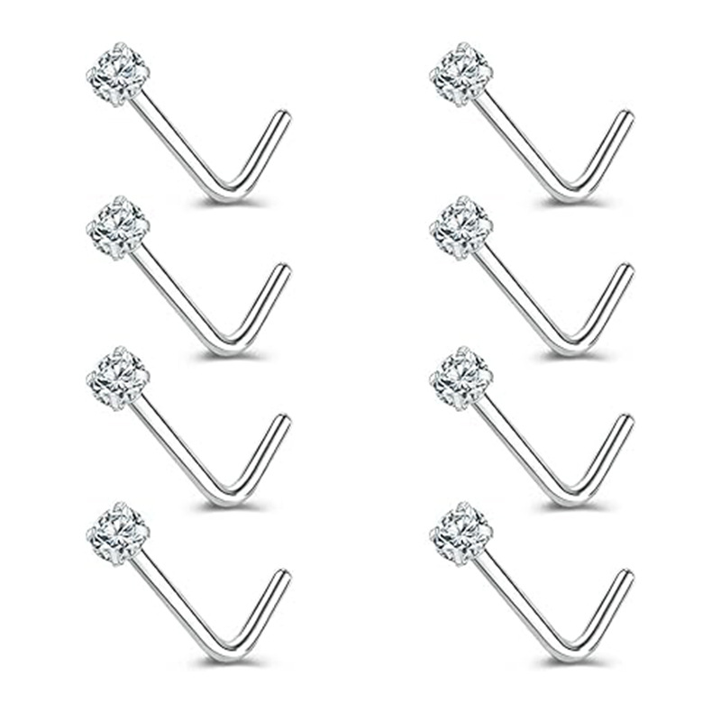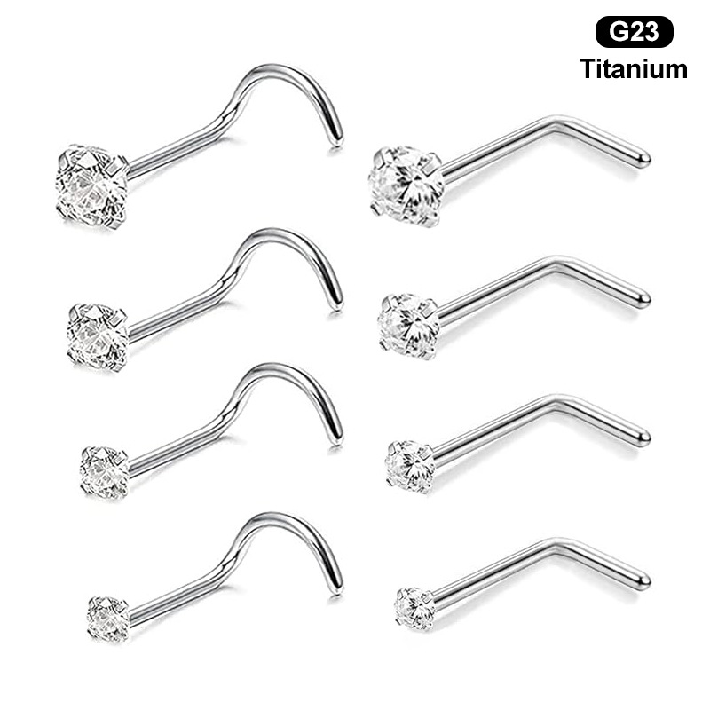 Cross-border European and American G23 titanium zircon nose nail straight rod L Rod S Rod body piercing personality nose jewelry 7 words 5 words nose nail