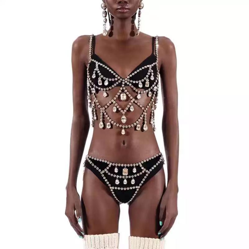 | nameOriginal | Cross-border European and American hot sale sexy Crystal bra thong chain summer beach bikini body chain suit wholesale |