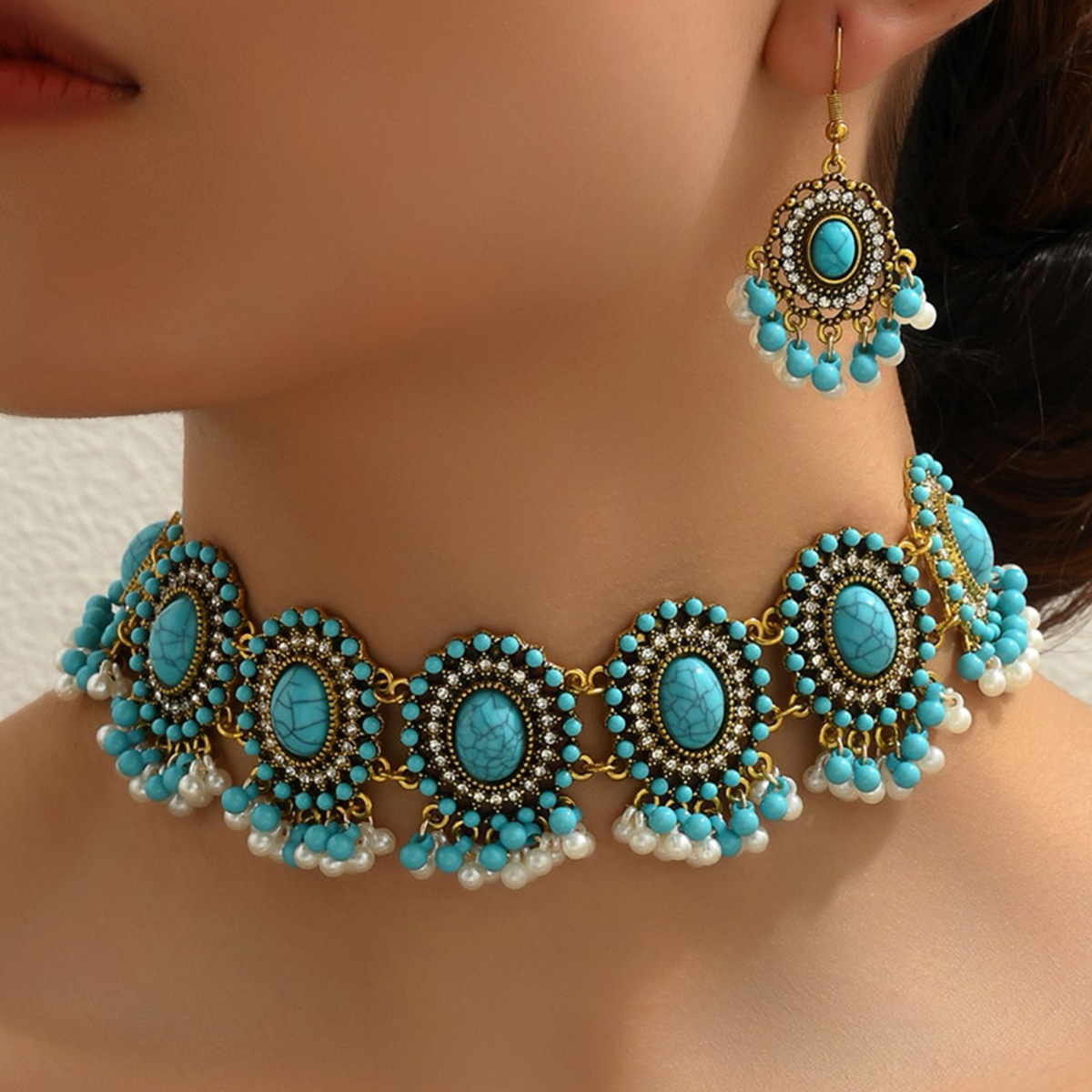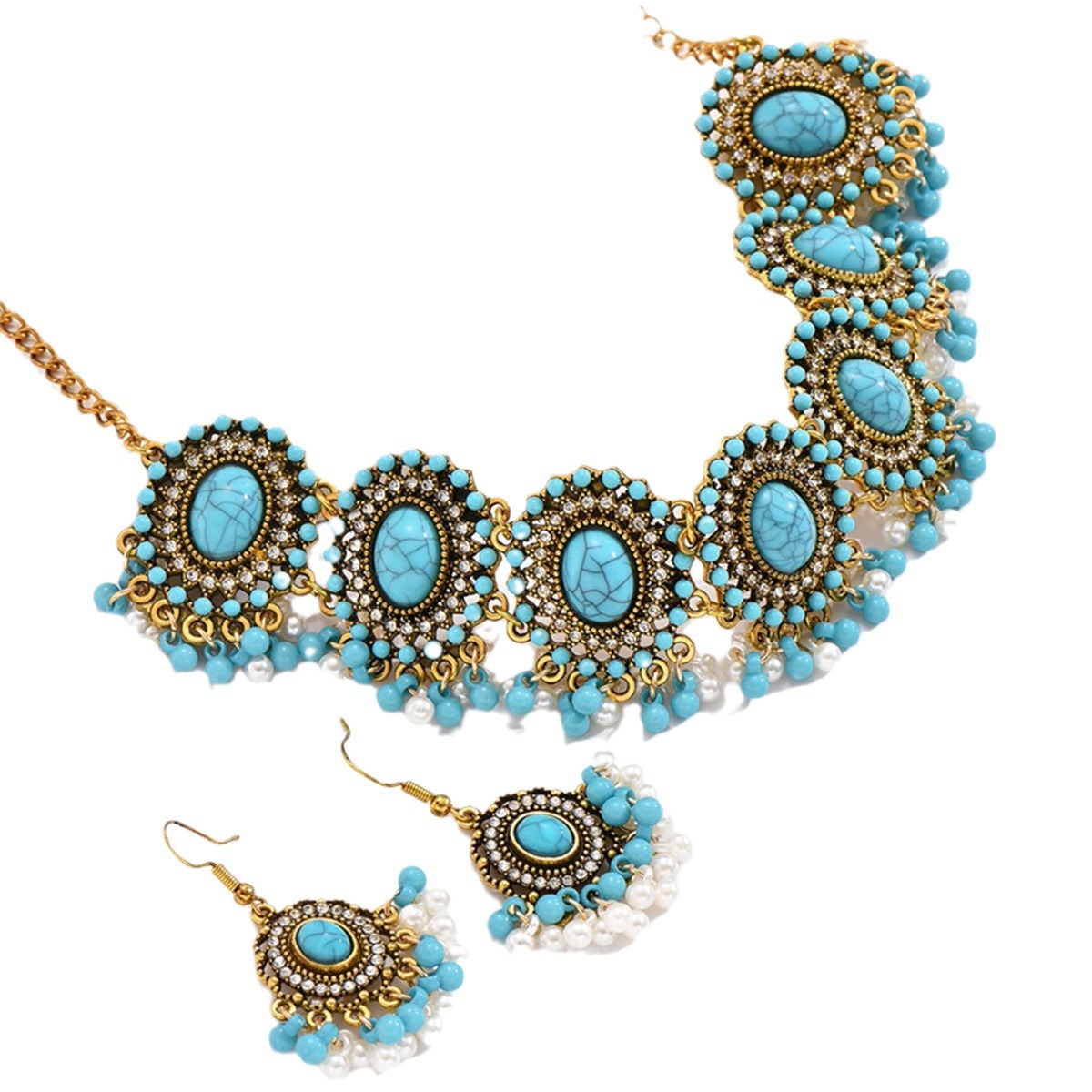 | nameOriginal | Cross-border European and American Hot-selling Turquoise Drops Oval Necklace Earrings for Women Bohemian Fashion Vintage Ethnic Style suit |