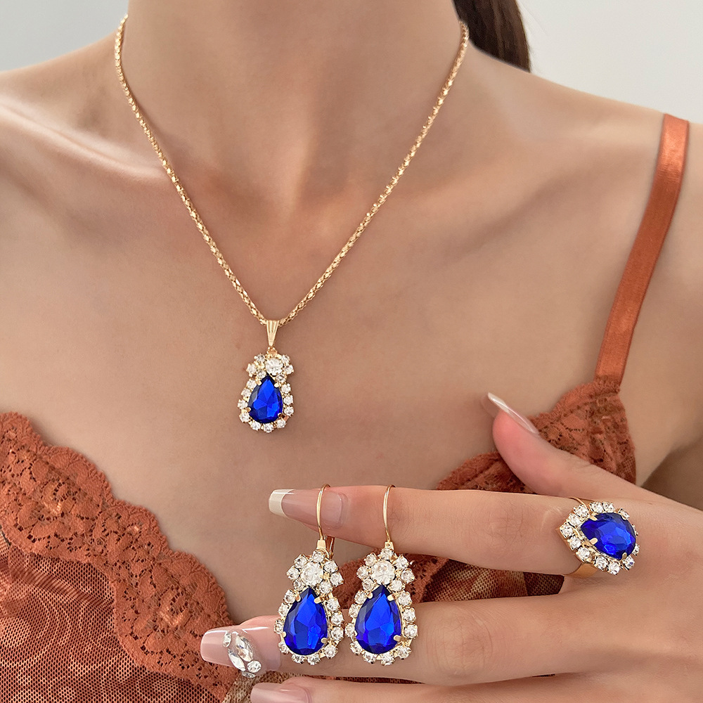 | nameOriginal | Cross-border European and American ins water drop jewelry suit personalized fashion color rhinestone necklace earrings ring suit bride |