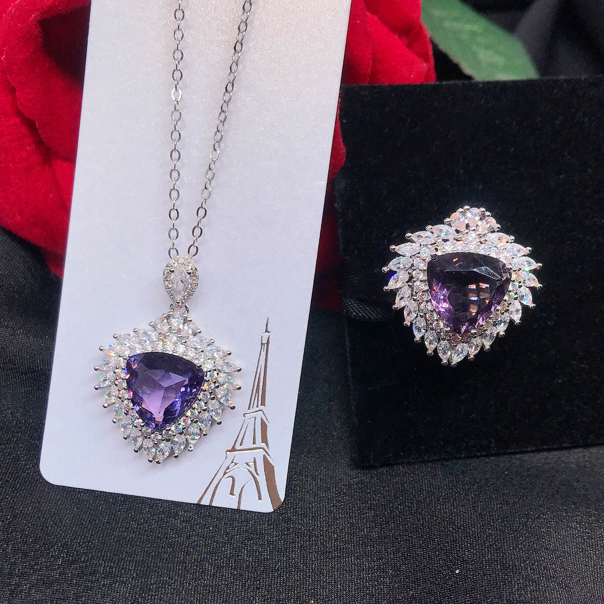| nameOriginal | Cross-border European and American Luxury Color Treasure suit Light Luxury Full Diamond High Carbon Diamond Inlaid Amethyst Pendant Open Ring for Women |