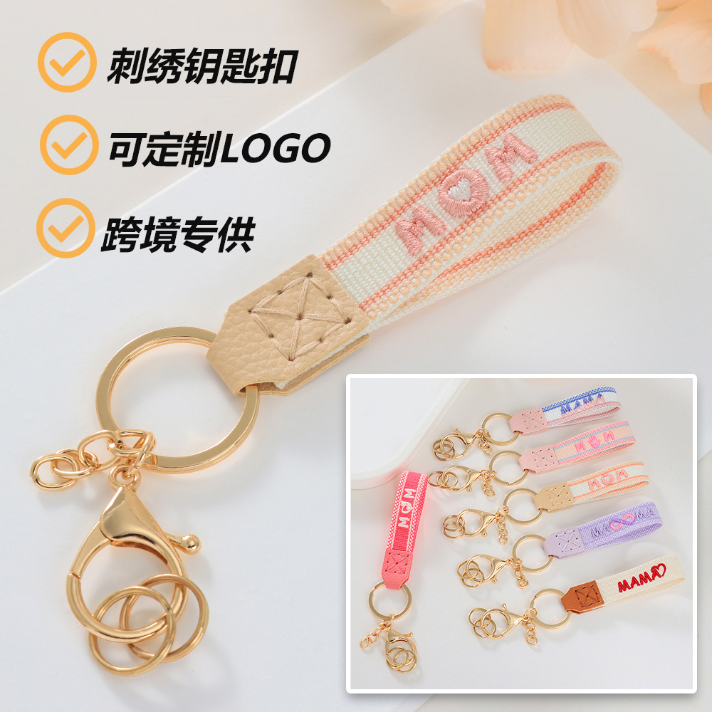 | nameOriginal | Cross-border European and American Mother's Day Gift Hanging Embroidered Letter Pattern Hand-crocheted Leather Gold Ring Keychain |