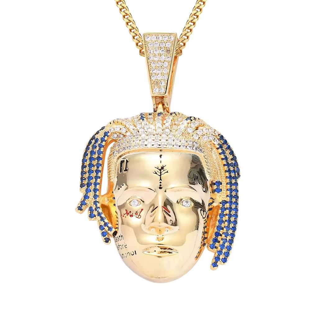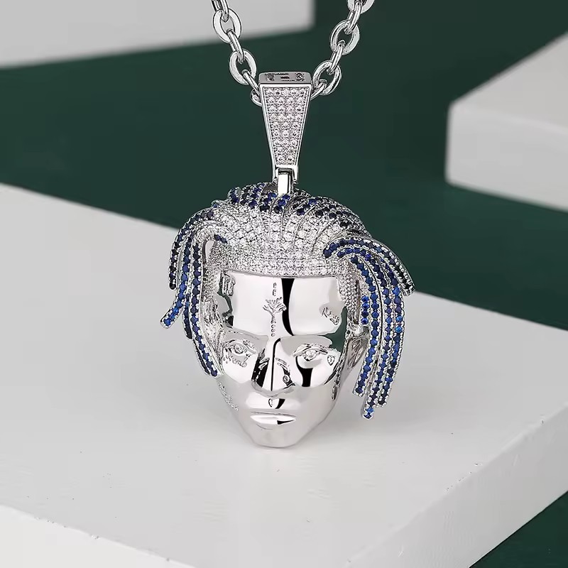| nameOriginal | Cross-border European and American rapper XXXtentaciong avatar pendant copper synthetic zircon micro-inlay personality necklace |