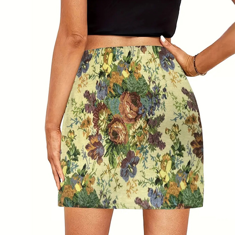 Cross-border European and American skirt 2024 new women’s fashion sexy printed skirt women’s slim hip lifting zipper skirt