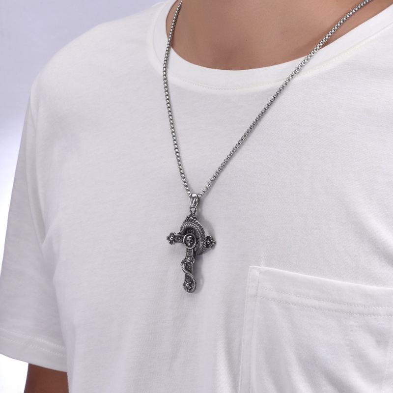 | nameOriginal | Cross-border European and American skull Dragon cross vintage pendant personalized distressed men's domineering pendant accessories necklace |