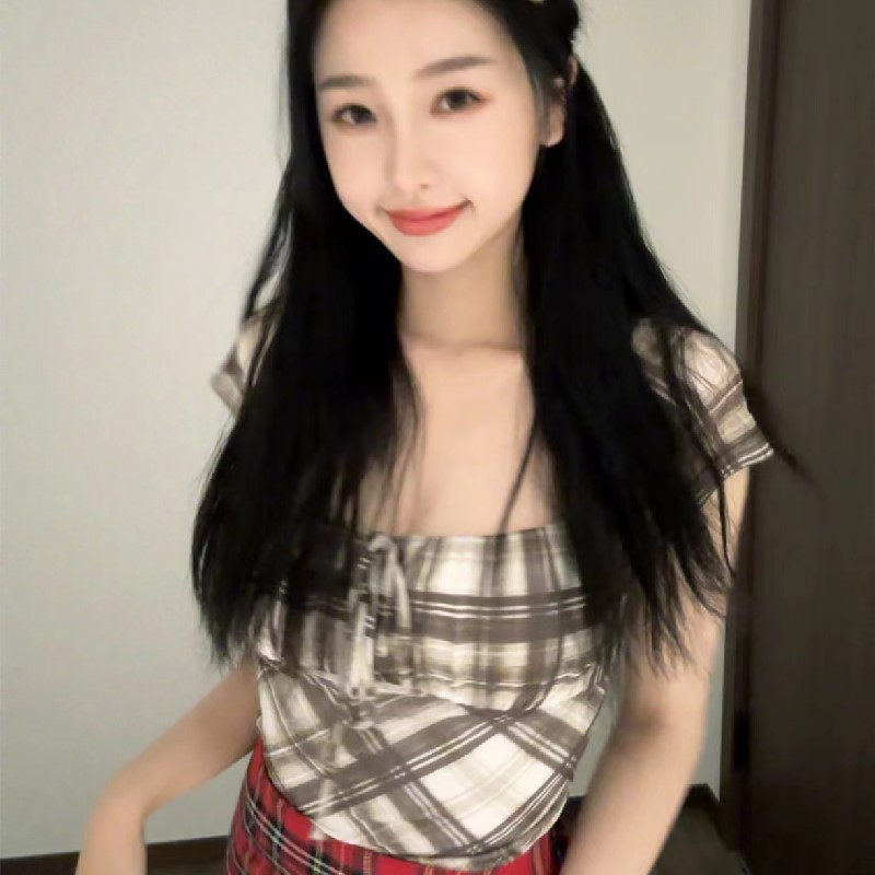 | nameOriginal | Cross-border European and American Spring Sexy Spice Girls Pleated Lace-up Contrast Color Plaid Square Collar Slim-fit Short-sleeved T-shirt Top |