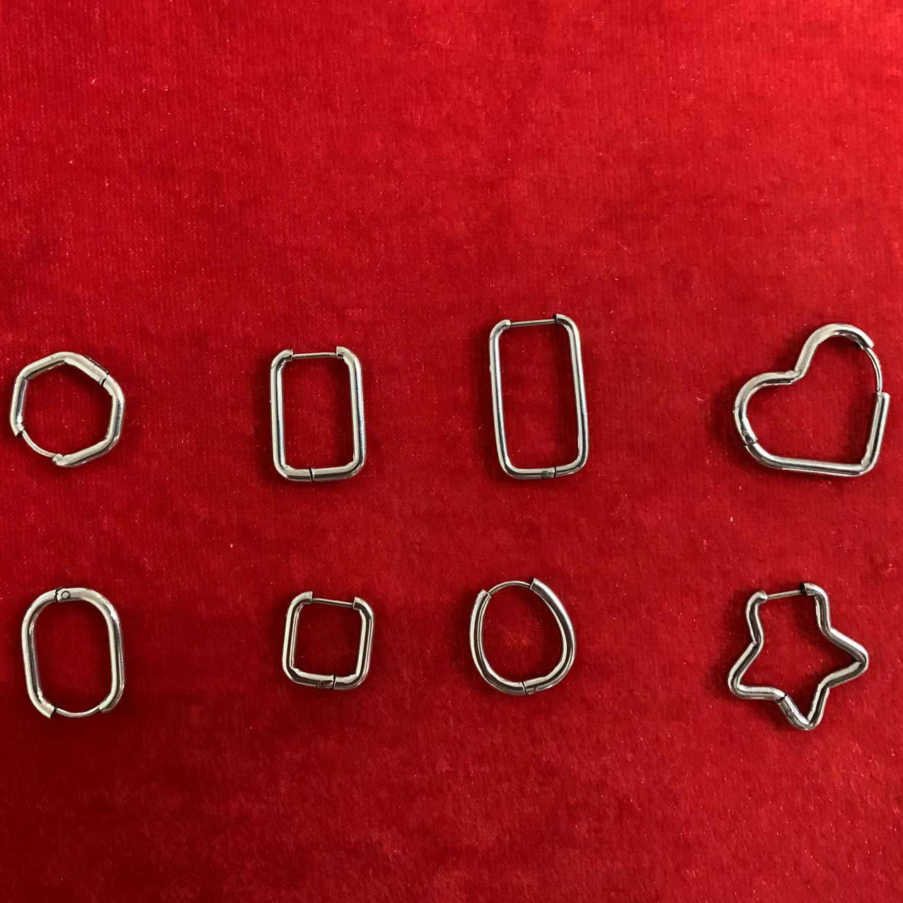 | nameOriginal | Cross-border European and American style fashion special-shaped stainless steel geometric ear buckle earrings peach heart U-shaped pentagonal wholesale factory |