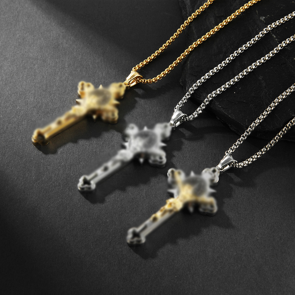 Cross-border European and American style niche design titanium steel cross necklace personality light luxury trendy men wear accessories pendant