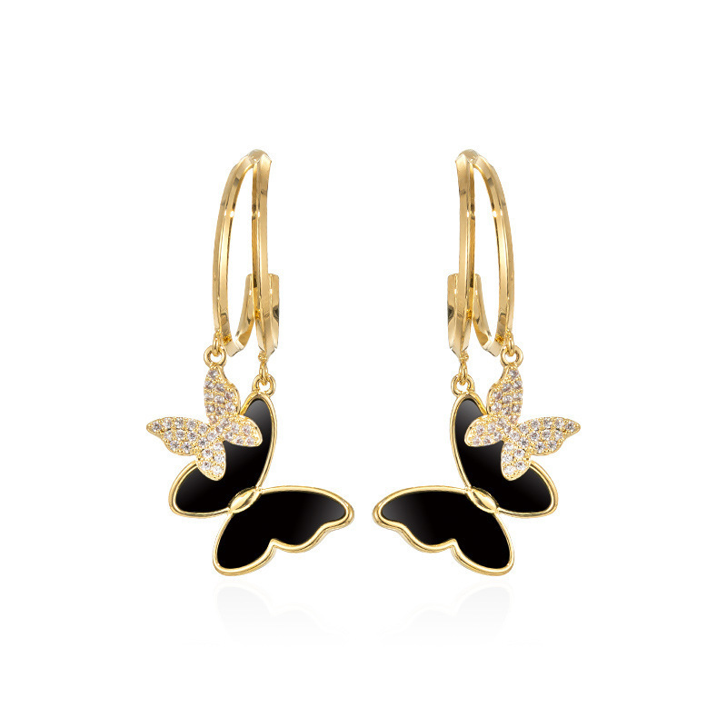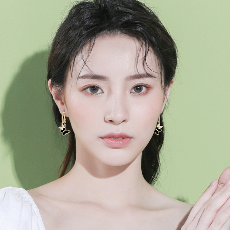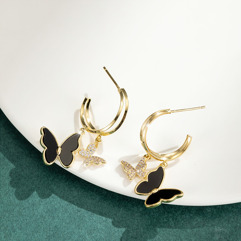 Cross-border European and American-style Personalized Design Small Fragrant Style Light Luxury High-end Butterfly Double Flying Earrings Earrings