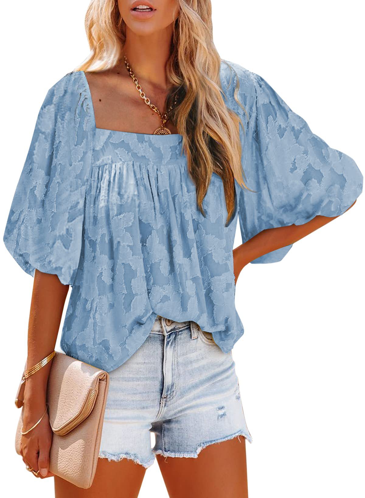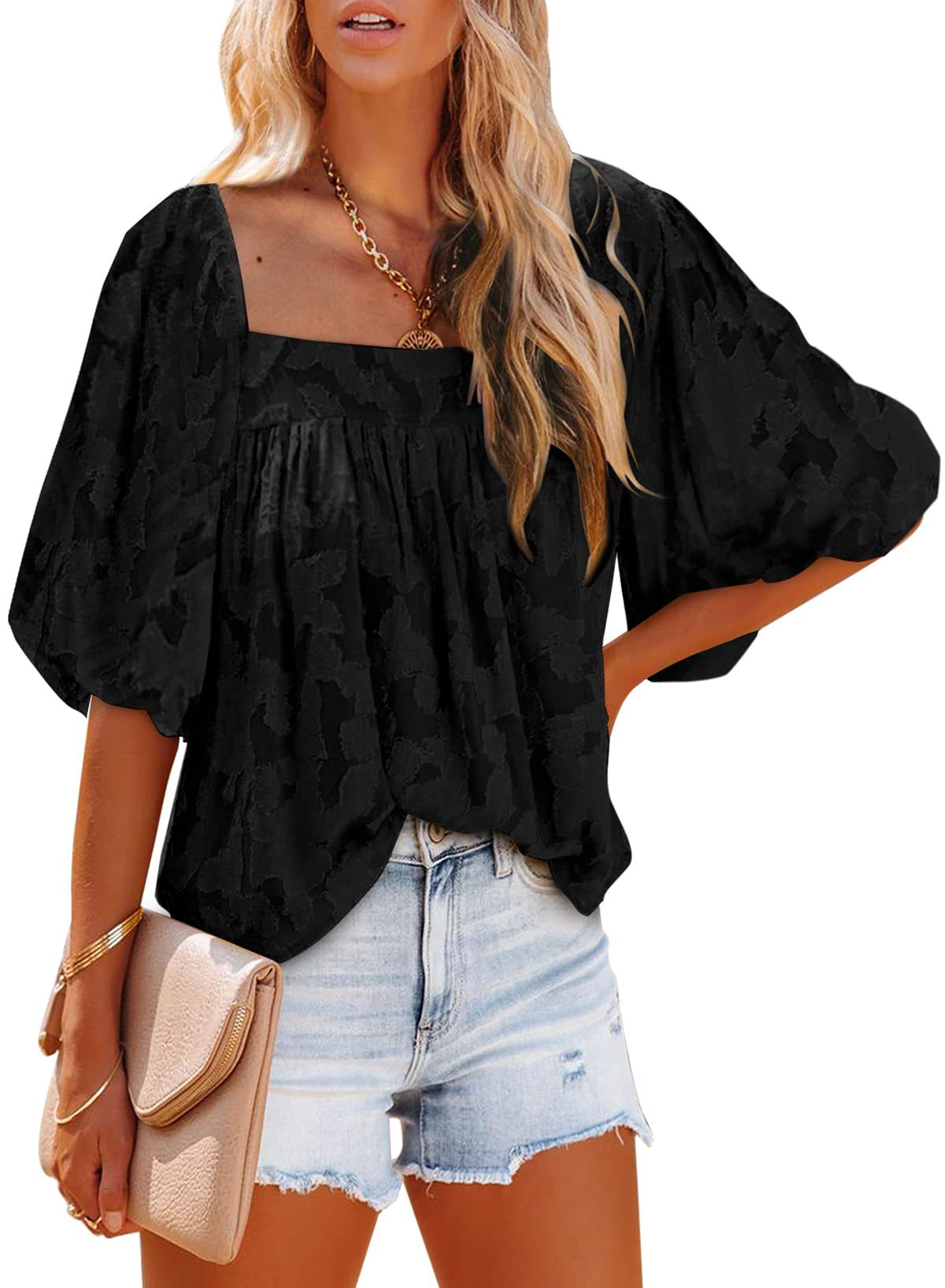 | nameOriginal | Cross-border European and American Women's 2022 Summer New Amazon Square Collar Chiffon Top Floral Texture Lantern Sleeve Shirt |
