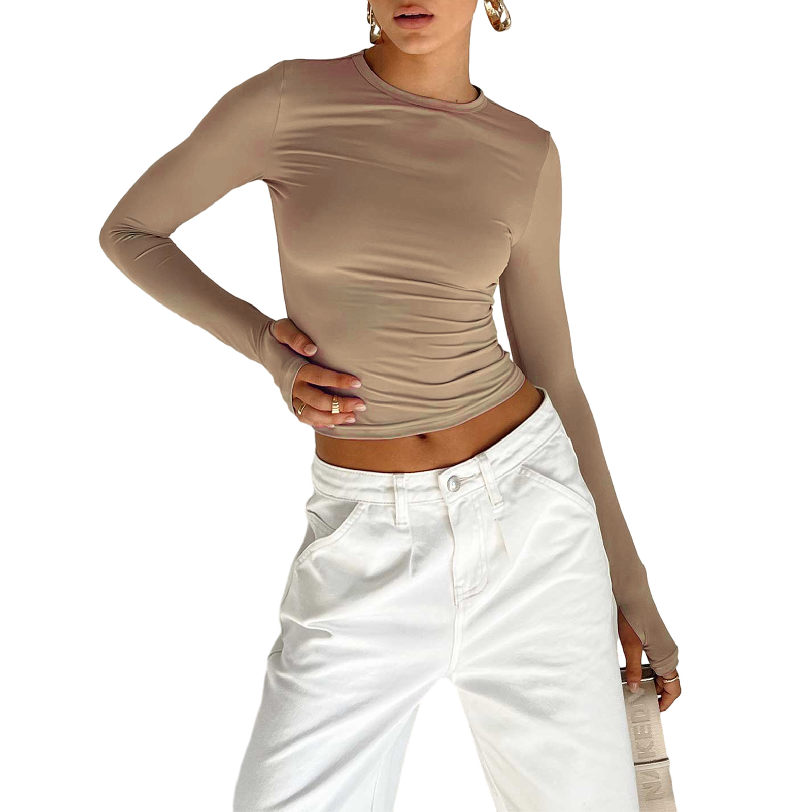 | nameOriginal | Cross-border European and American Women's 2024 Women's New T-shirt Fashion Slim Solid Color Crewneck Base Shirt Top Women |