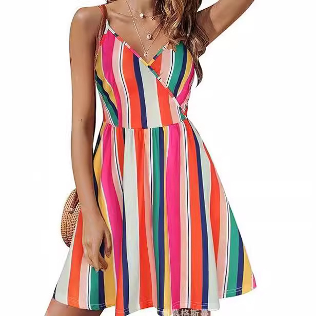 | nameOriginal | Cross-border European and American women's clothing Amazon popular sexy V-neck strap beach skirt dress pocket |