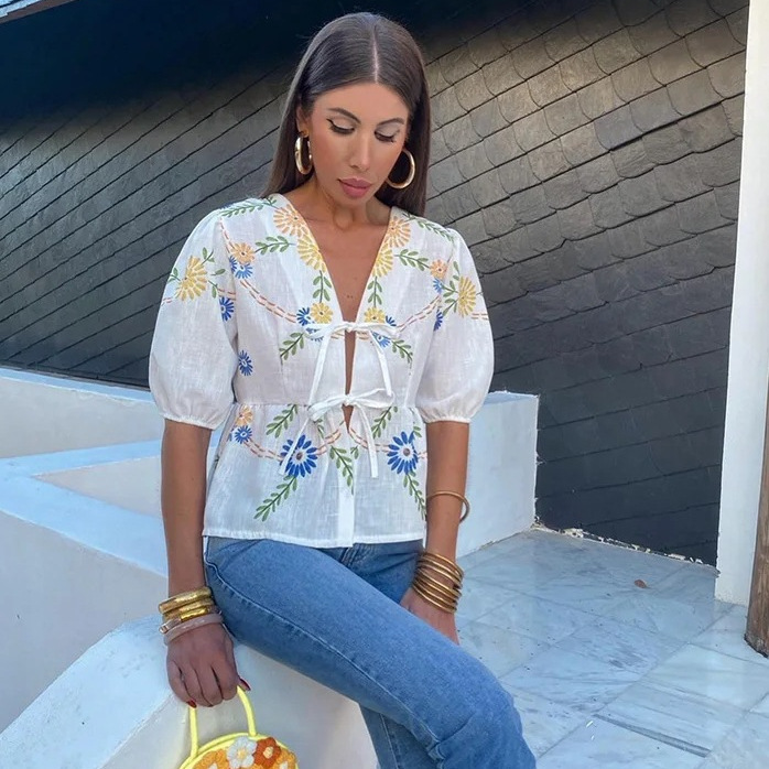 | nameOriginal | Cross-border European and American women's V-neck lace-up printed short sleeve jacket-AliExpress explosions long-term stock rest assured shelves |