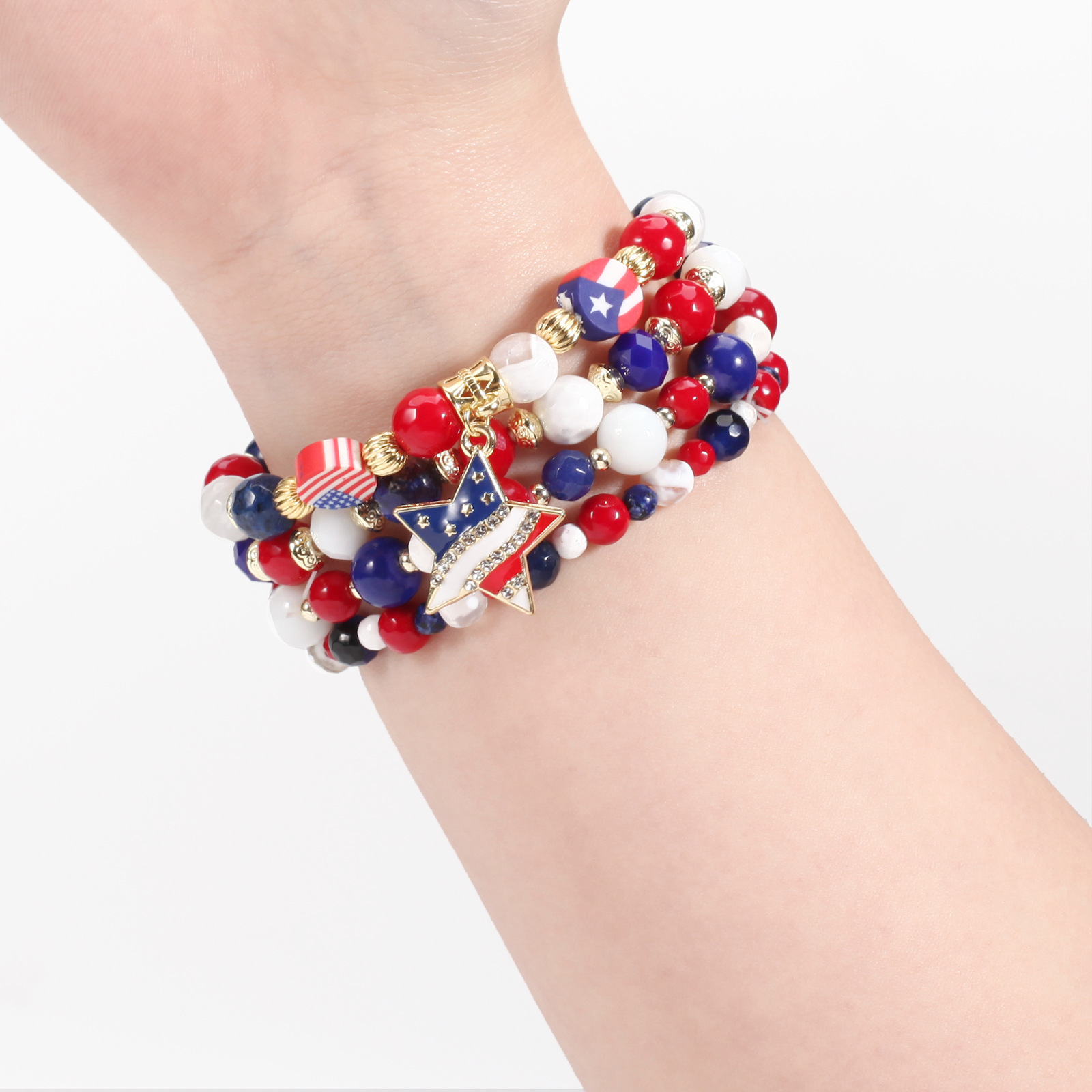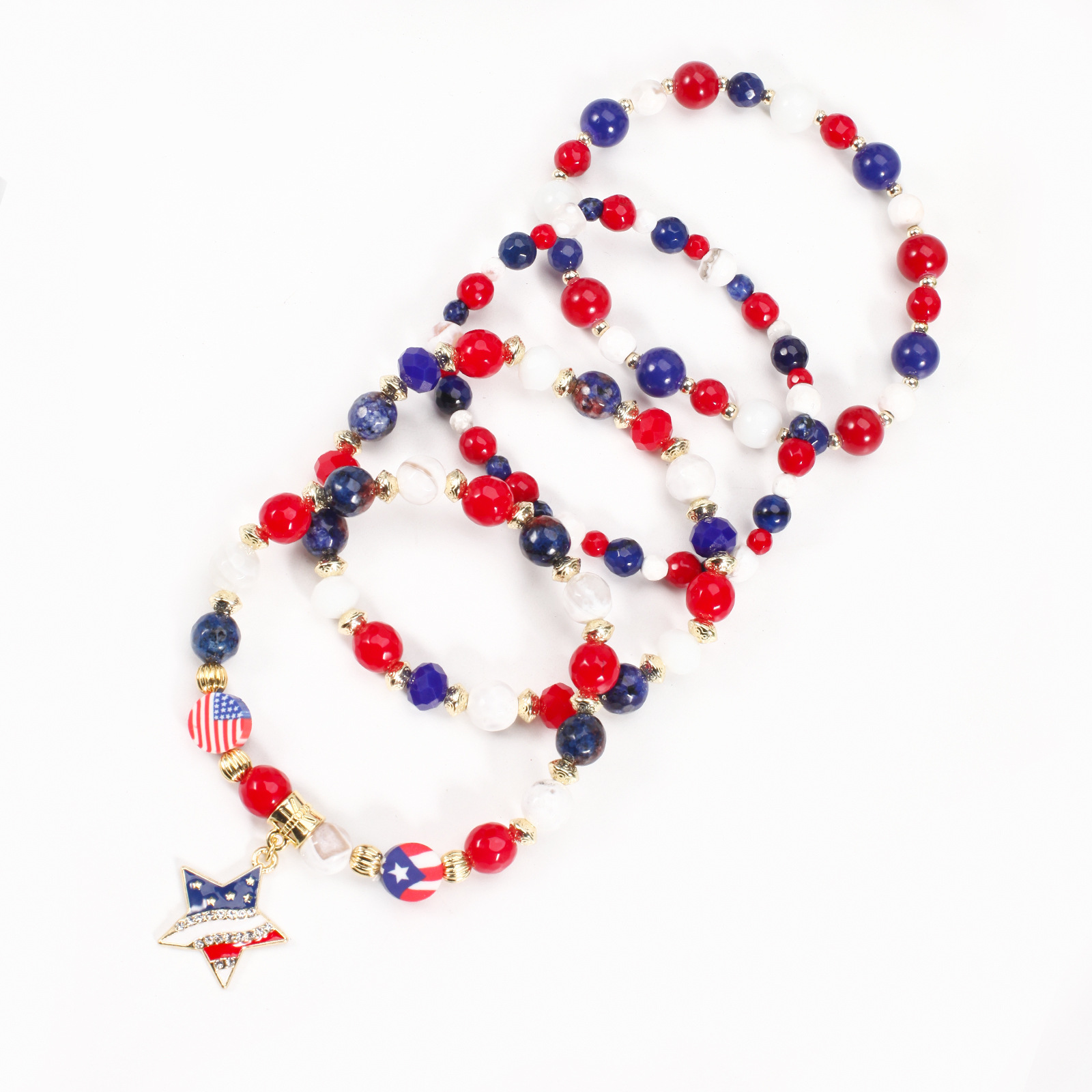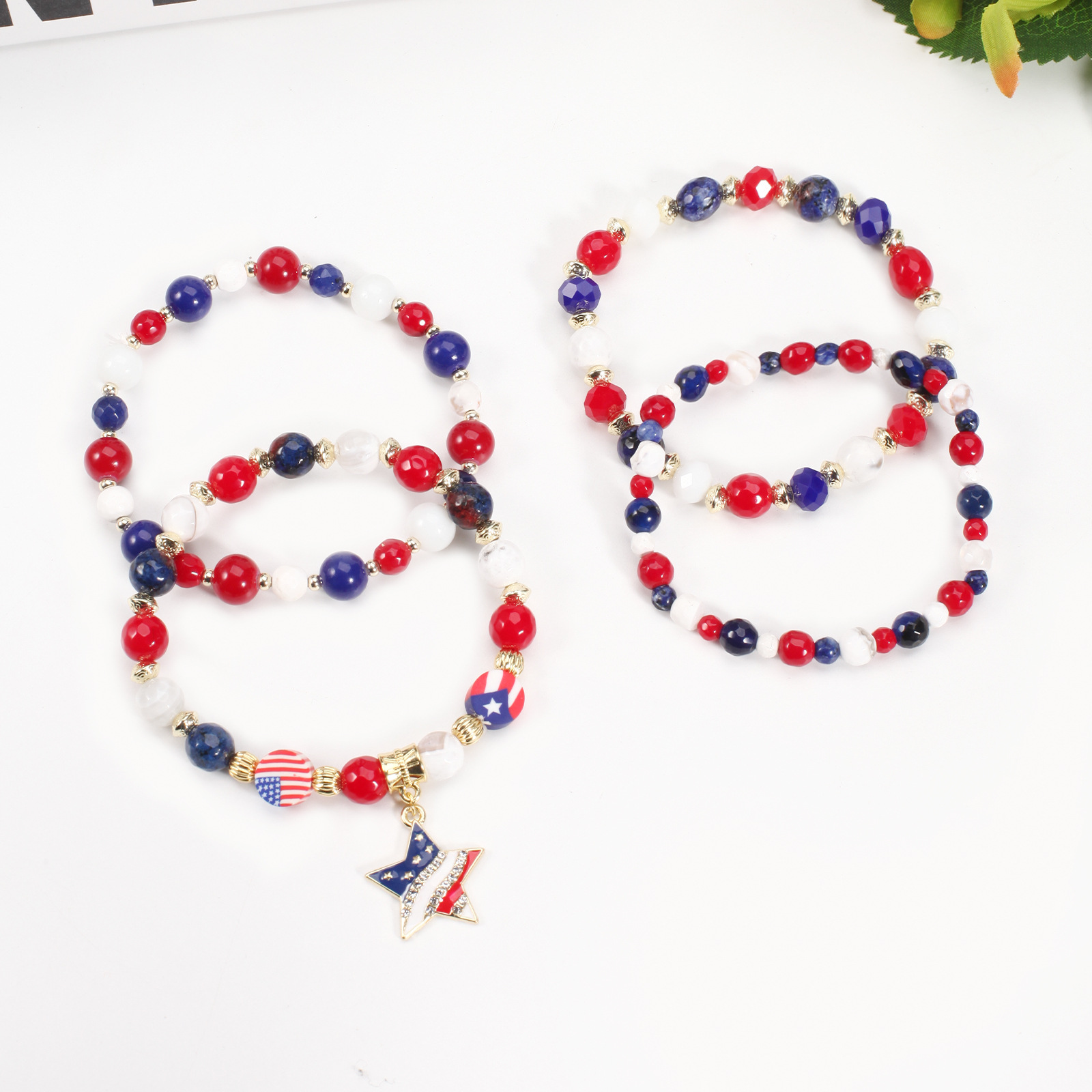 | nameOriginal | Cross-border exclusive 8cm round beads natural stone five-pointed star American Independence Day bracelet bracelet suit in stock wholesale |