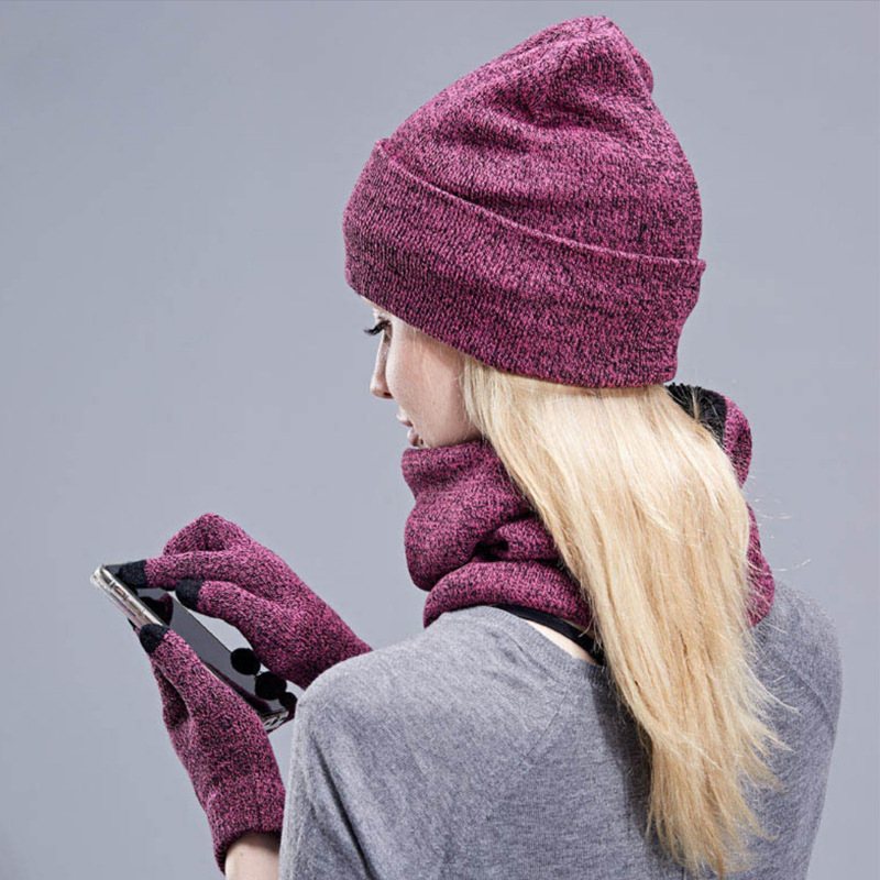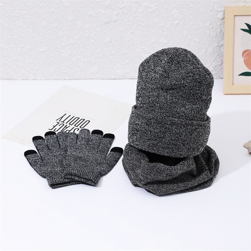 Cross-border exclusive fleece-lined three-piece wool hat winter knitted hat fleece-lined thick cycling warm gloves scarf suit