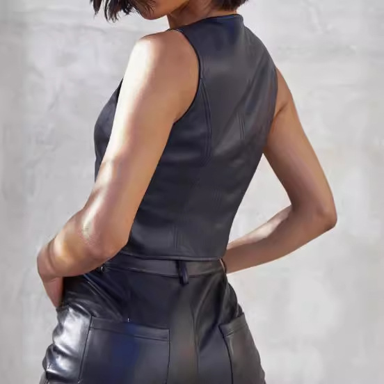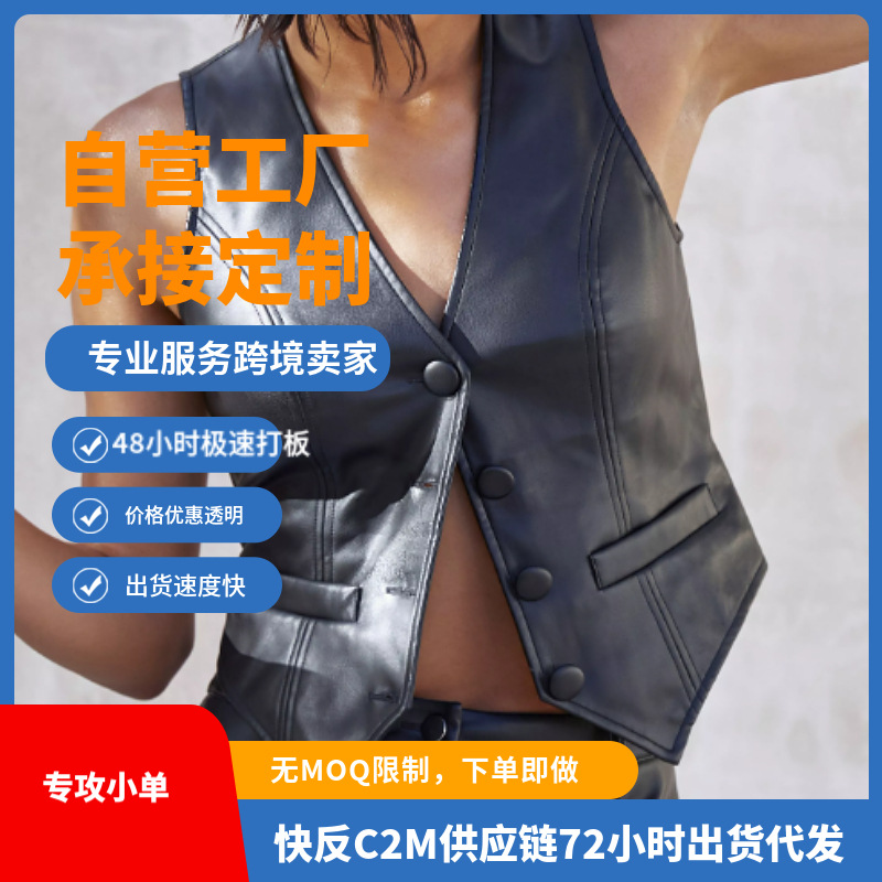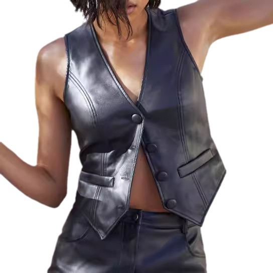 | nameOriginal | Cross-border Exclusive for Amazon Best Selling European and American Women's Fashion Slim Fit Slim Commuter Button Pu Leather Vest |