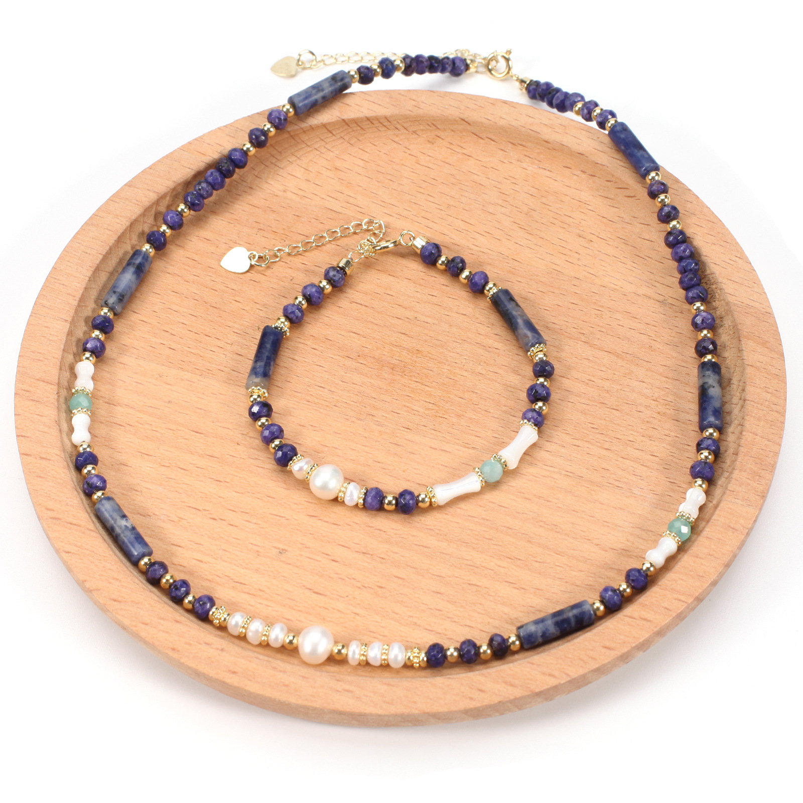 | nameOriginal | Cross-border exclusive for freshwater pearl bamboo shell lapis lazuite natural stone bracelet necklace suit women in stock wholesale |