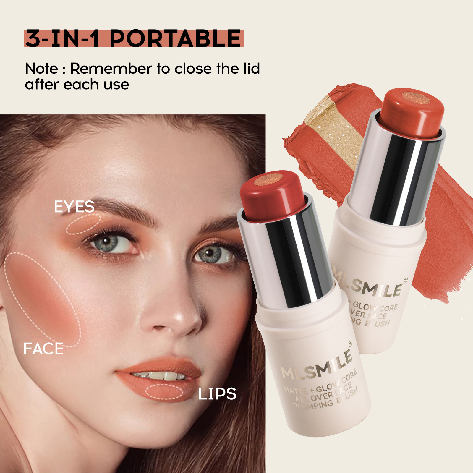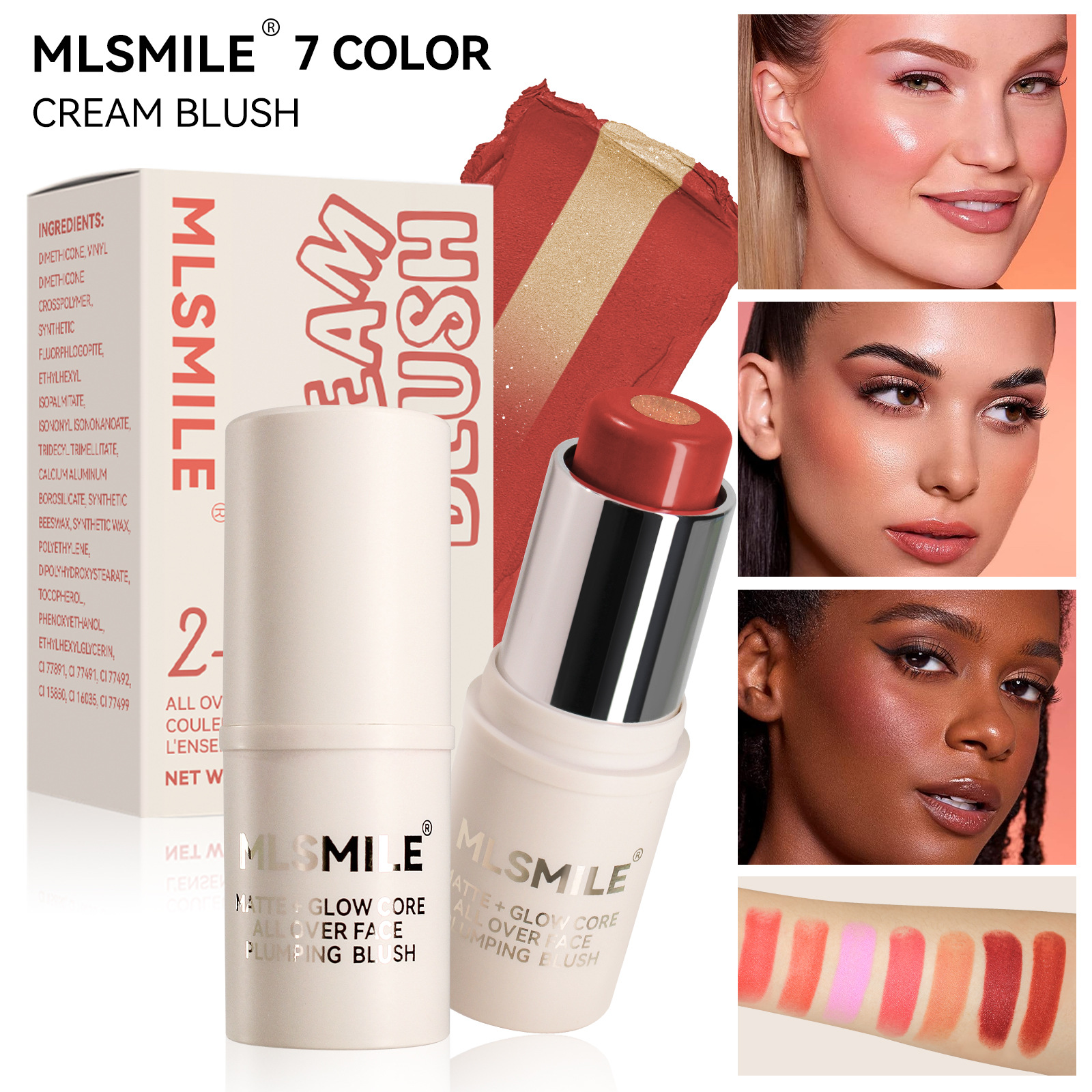 Cross-border exclusive for two-color blush sandwich blush stick lip and cheek dual-use natural makeup brightening gradient rouge blush cream