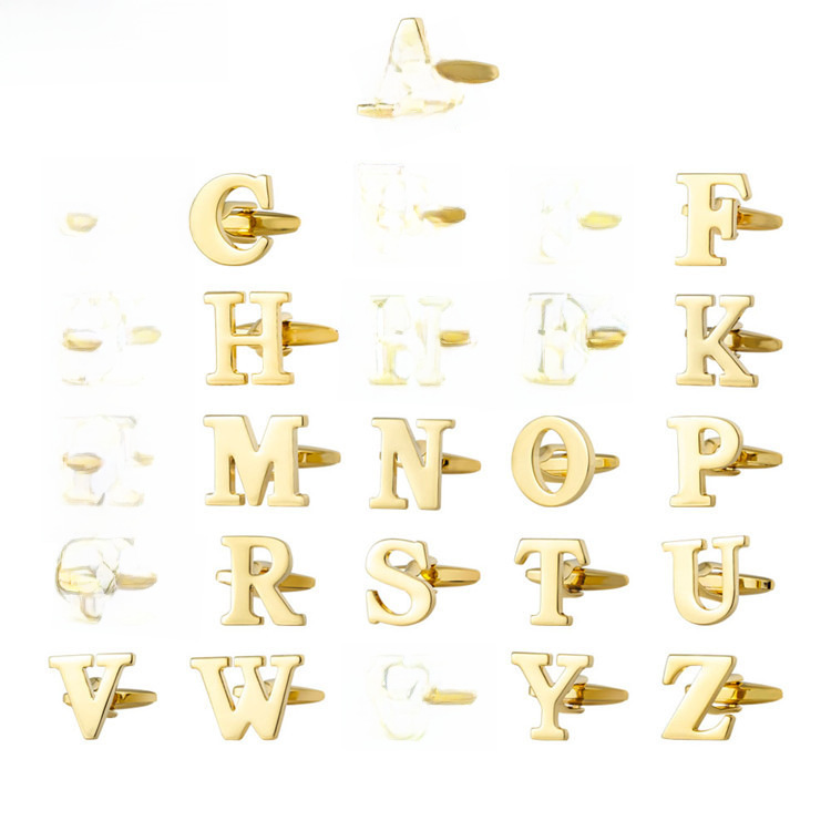 | nameOriginal | Cross-border exclusive Gold 26 English letters smooth metal copper cufflinks wholesale men's French shirt cufflinks |