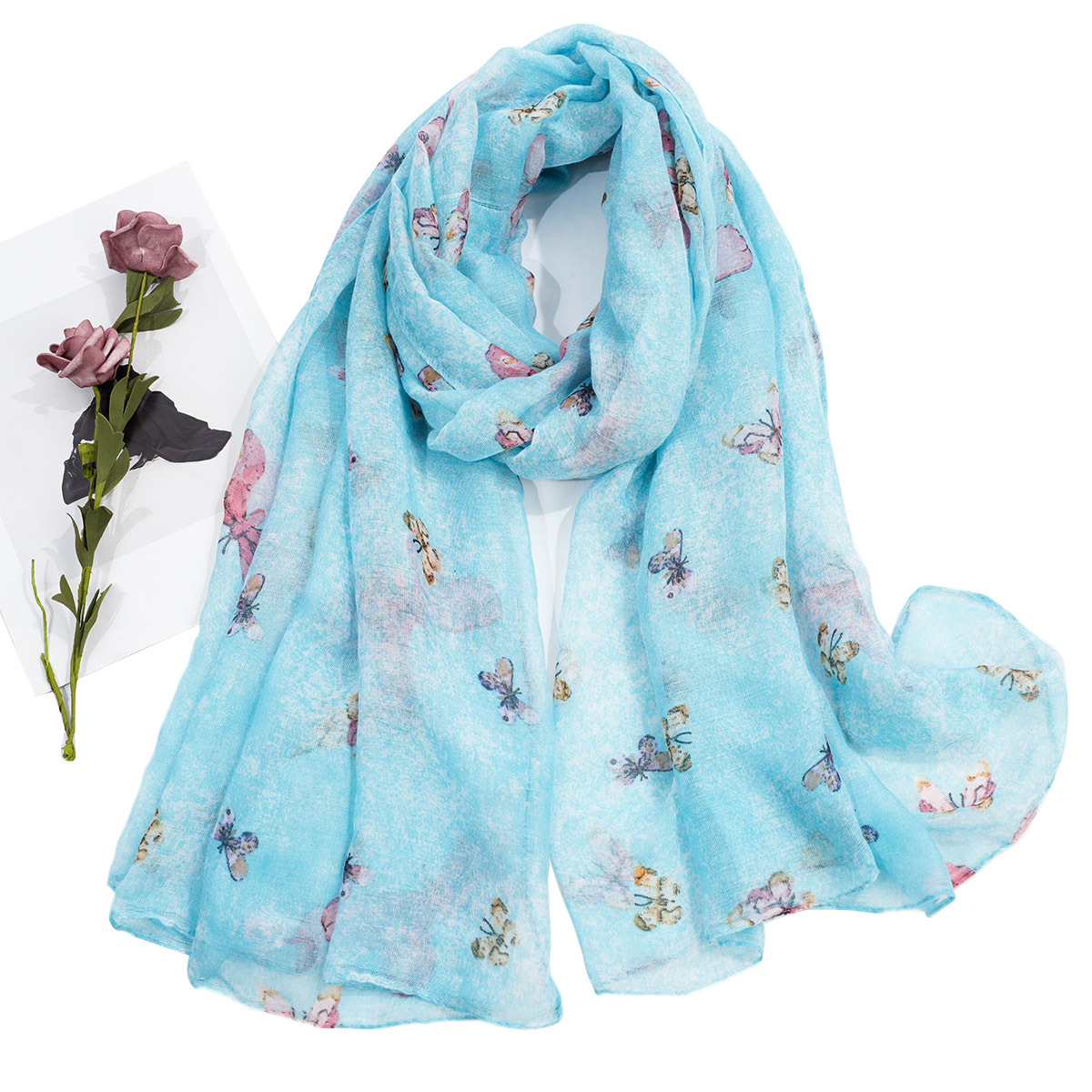 Cross-border exclusive new women’s silk scarf butterfly printed breathable lightweight scarf long shawl
