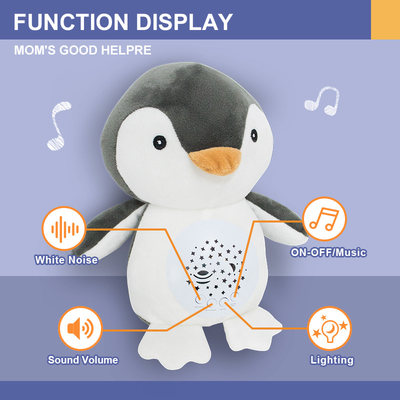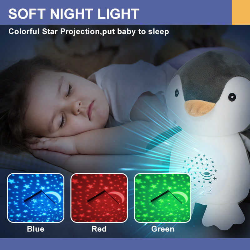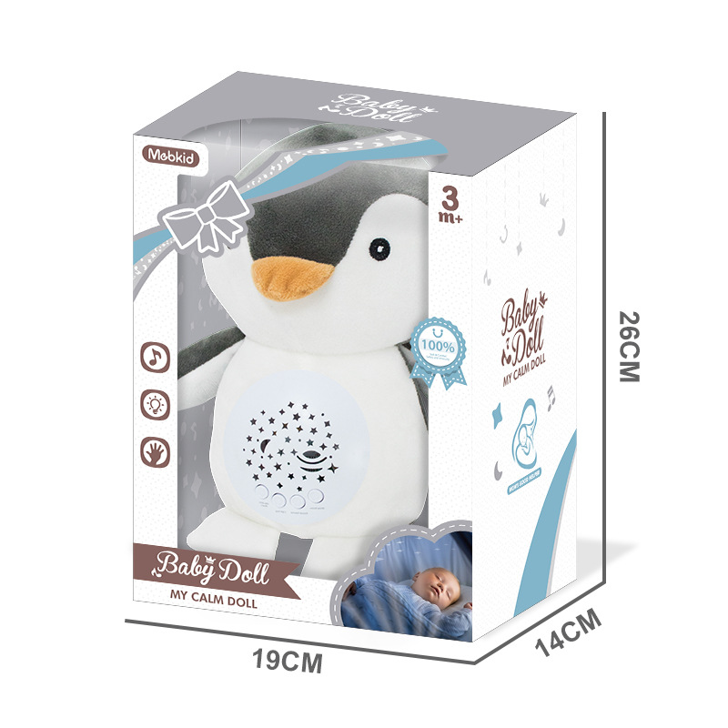 Cross-border exclusive plush penguin toy light projection music 0-3 years old children cartoon soothing plush doll