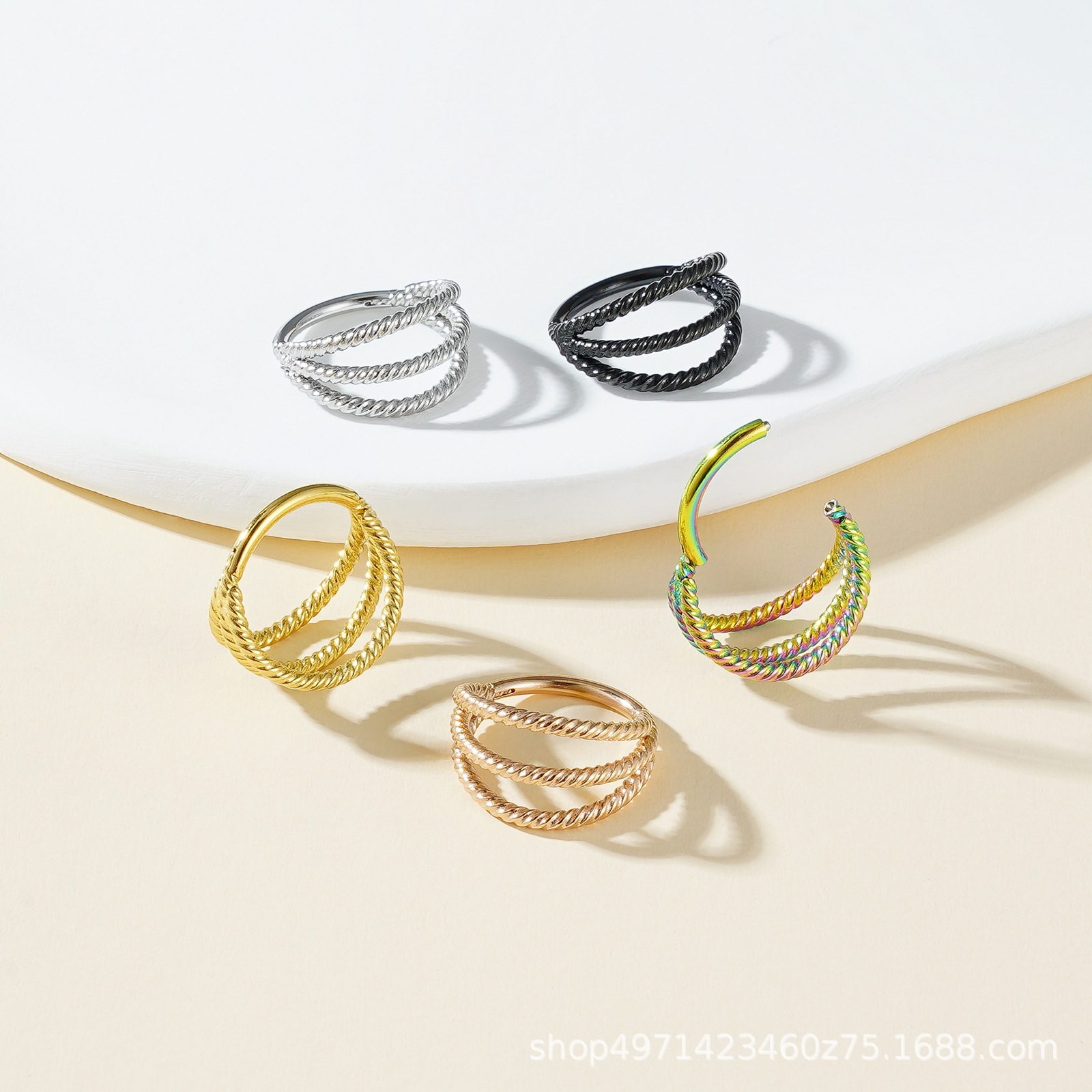 Cross-border explosions 316 stainless steel three-layer separate twisted nose ring seamless closed ring puncture jewelry factory direct sales