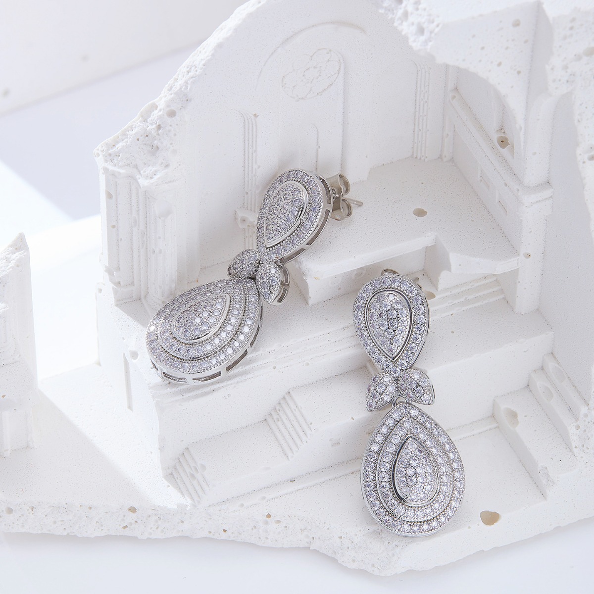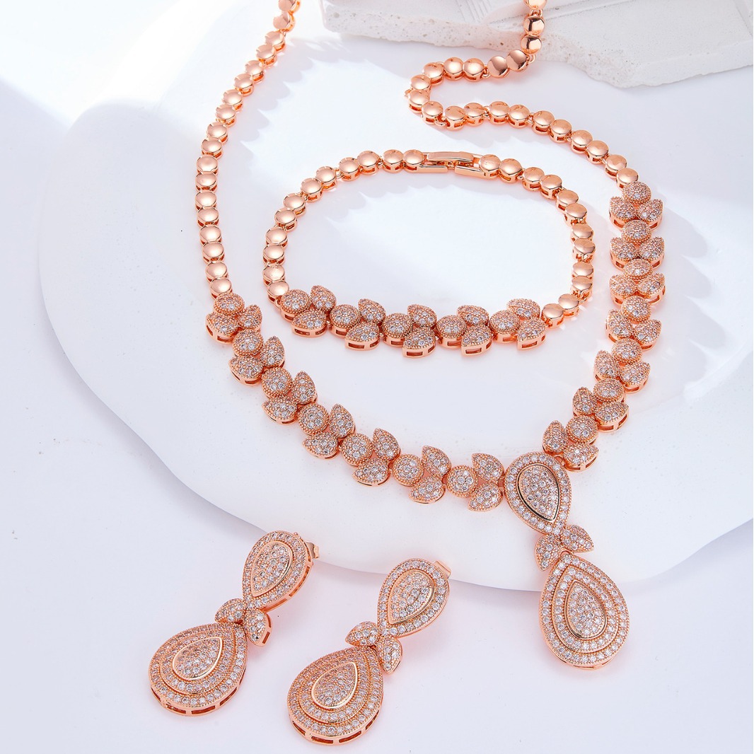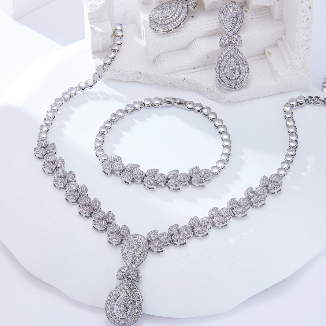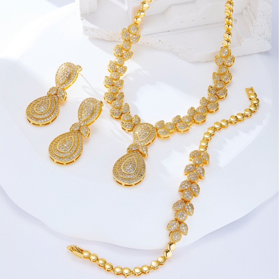 Cross-border Explosions 4-piece Set Drop Necklace High-end Wedding Joker Earrings Inlaid Shiny Zircon Bracelet