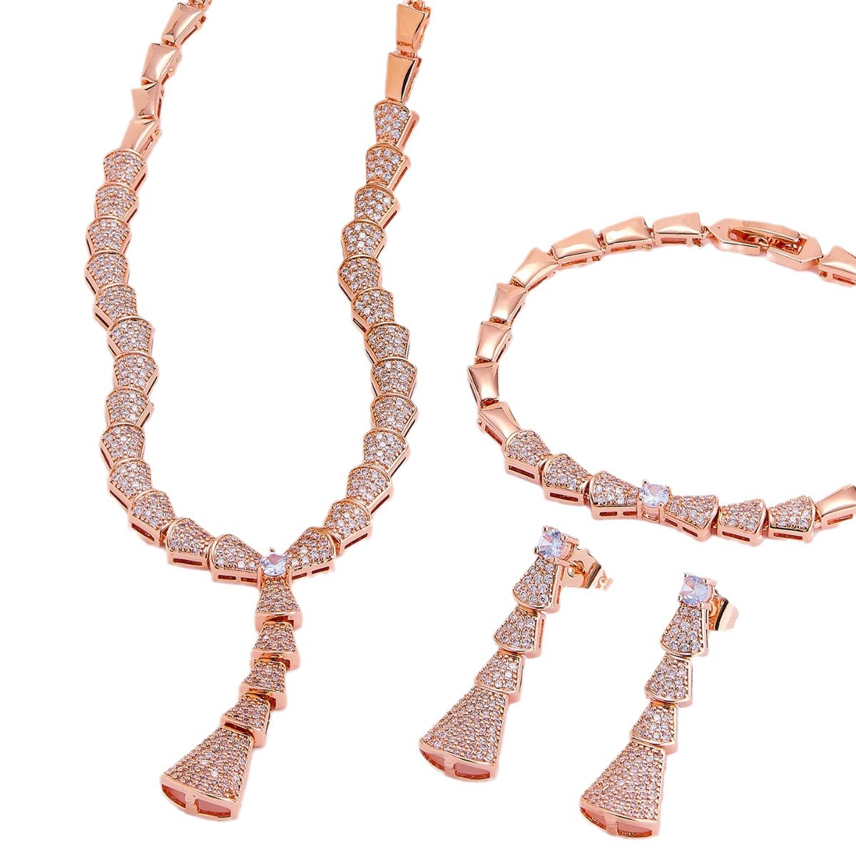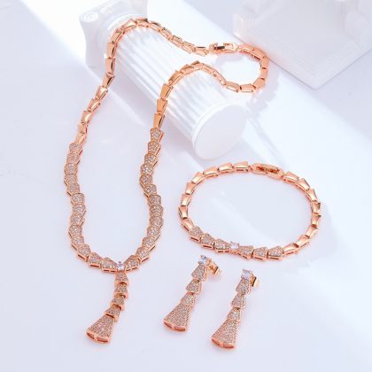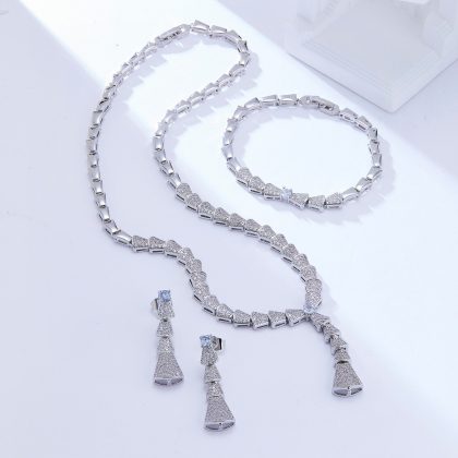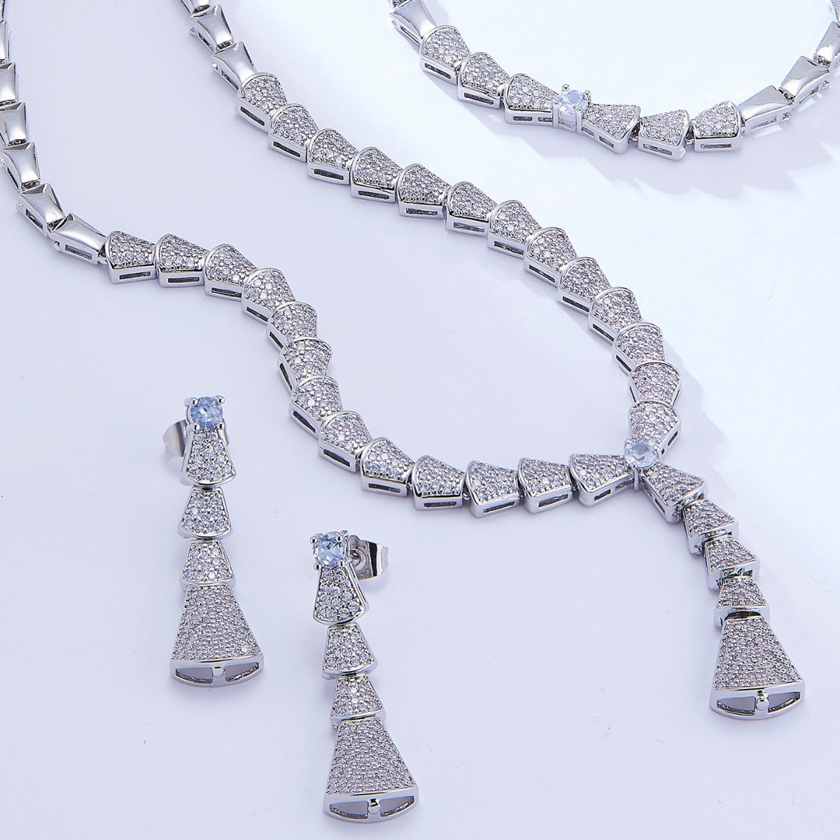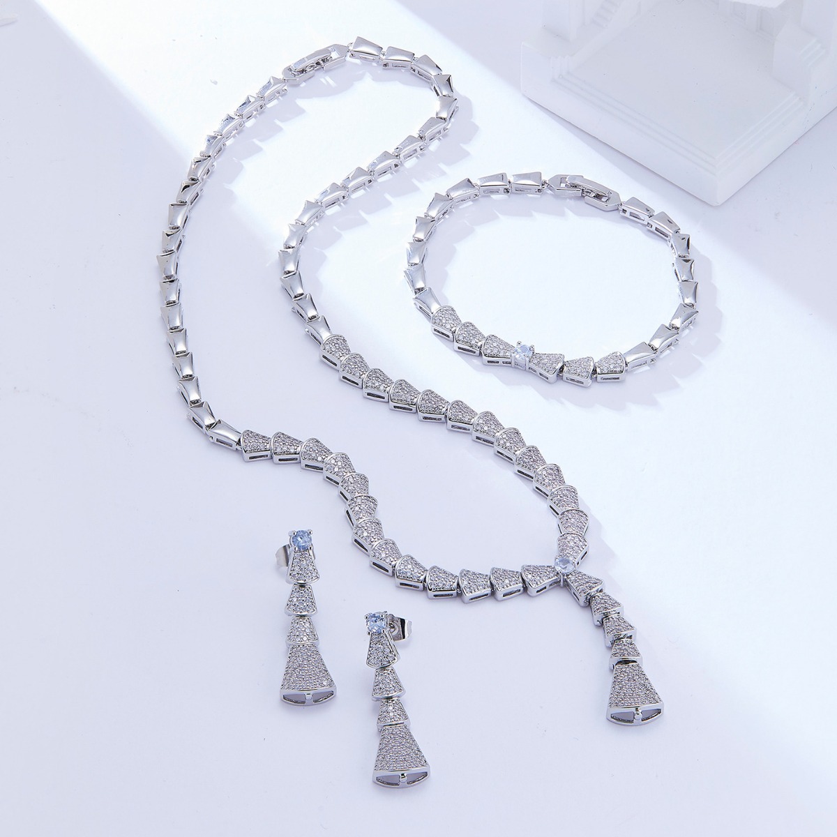Cross-border Explosions 4-piece Set of Irregular Bell-shaped Necklace High-grade Joker Earrings Inlaid with Shiny Zircon Bracelet