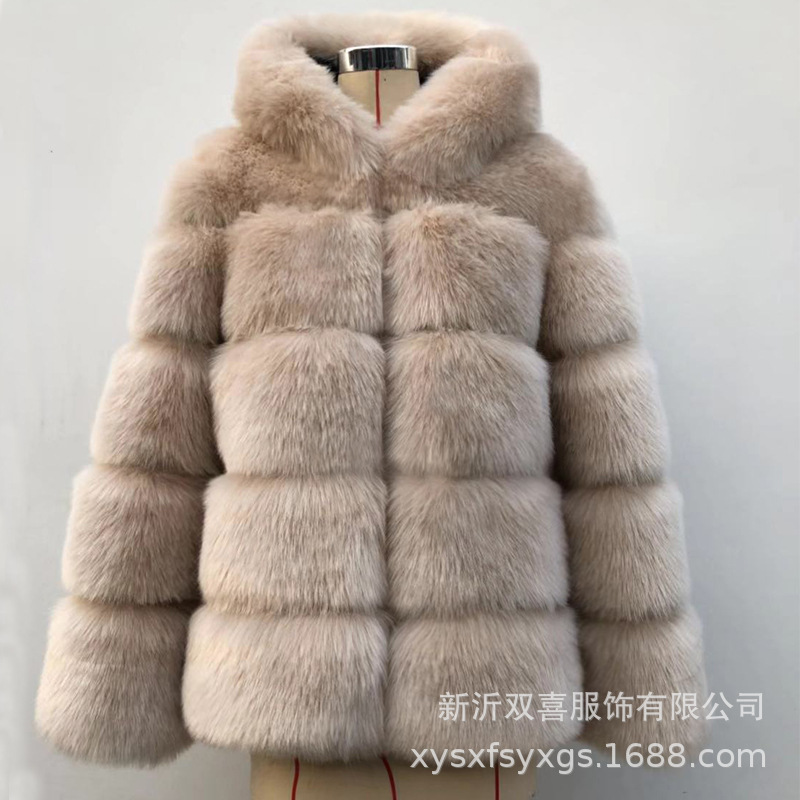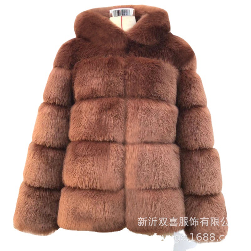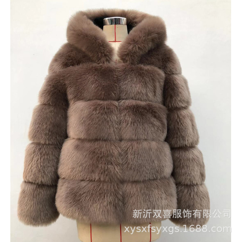 | nameOriginal | Cross-border explosions autumn and winter New imitation fox fur coat stitching hooded European and American women's warm fur coat |