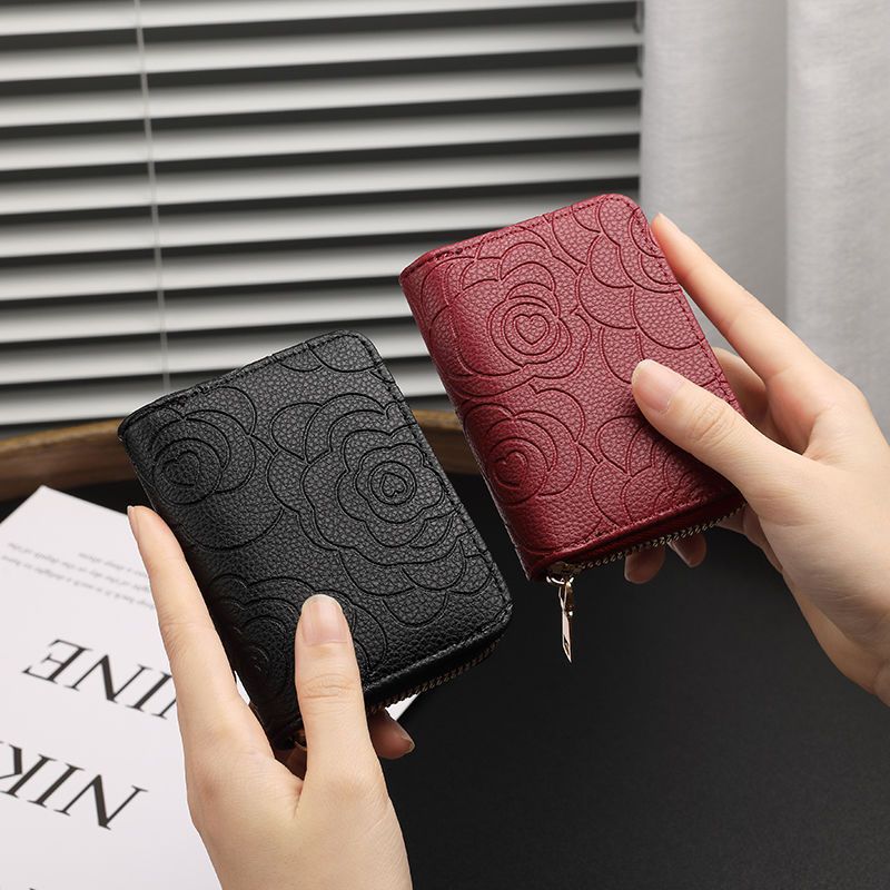 Cross-border Explosive Organ Card Bag Women’s Small and Exquisite Multi-card Bits Large Capacity Card Holder Zipper Camellia Card Set Women