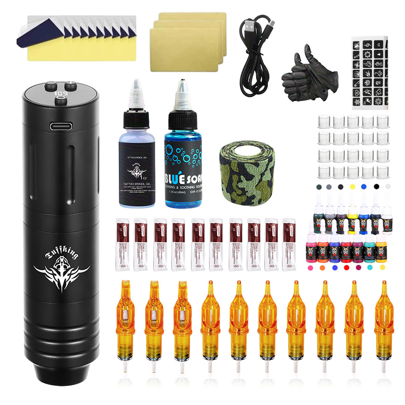 Cross-border explosive tattoo pen tattoo machine all-in-one machine set cyanobacteria tattoo all-in-one needle transfer paper tattoo tool