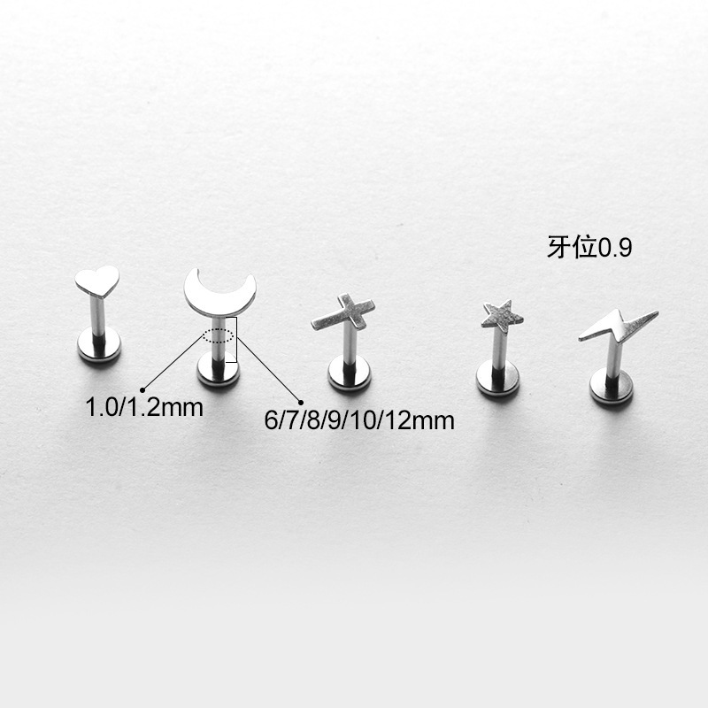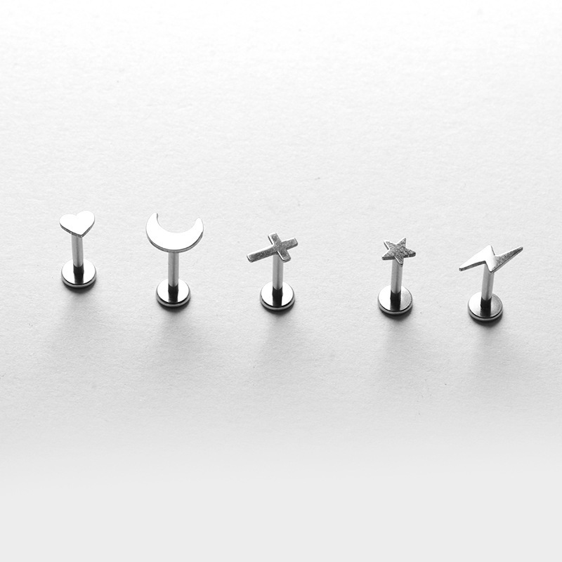 | nameOriginal | Cross-border F136 titanium alloy simple body piercing jewelry lip nail cross stars lightning love moon earrings  |