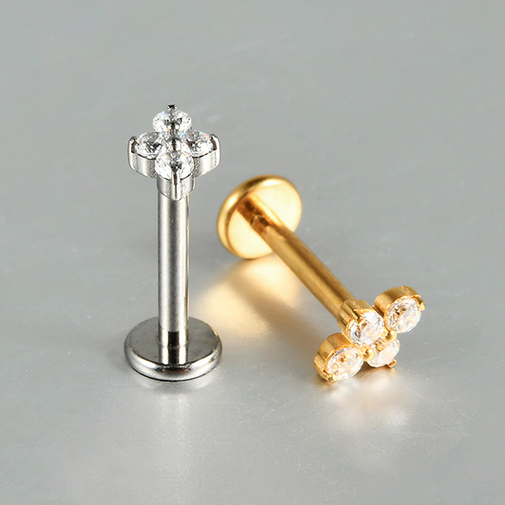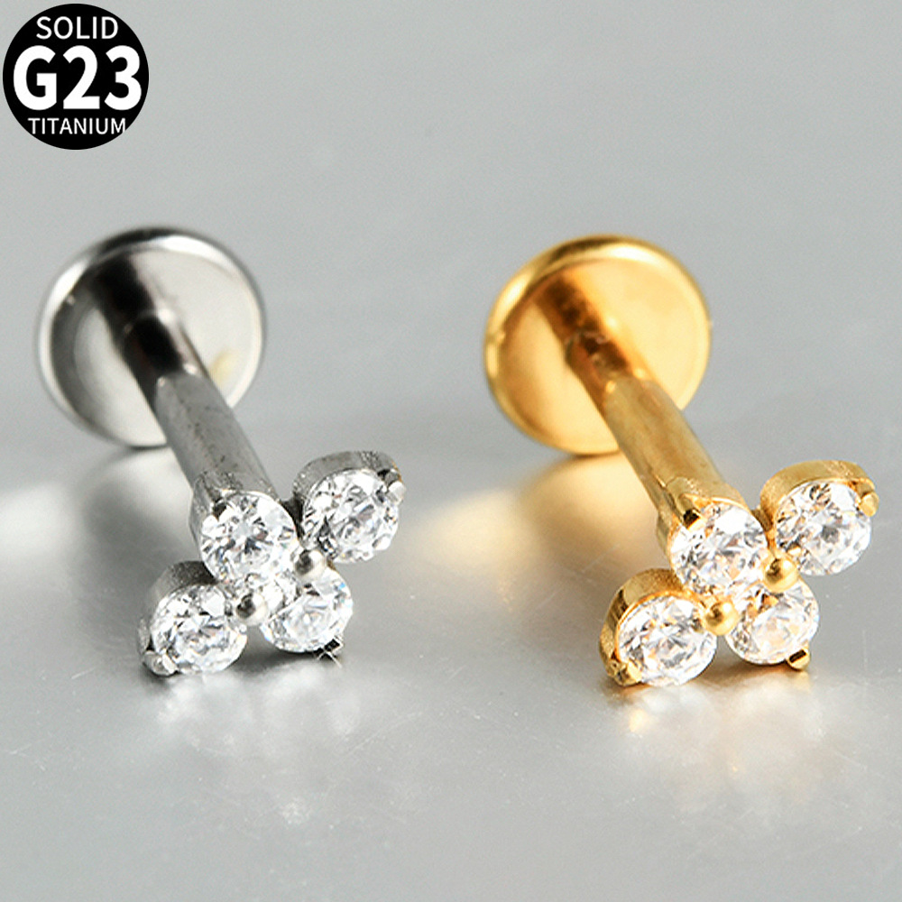 | nameOriginal | Cross-border F136 titanium earrings with diamonds 3A zircon four-leaf clover lip nails G23 titanium alloy body piercing jewelry |