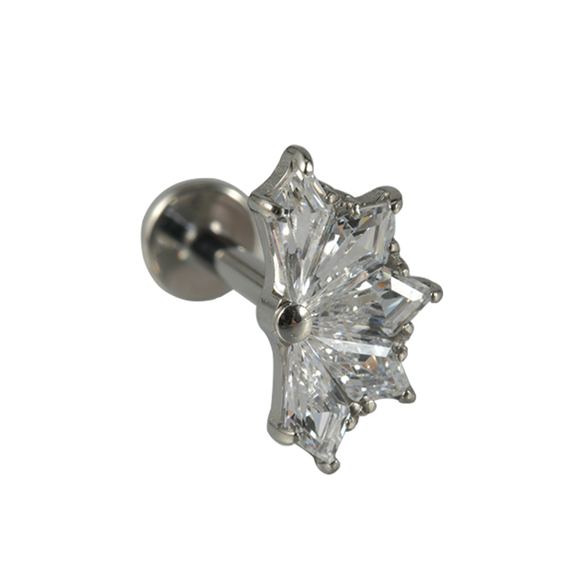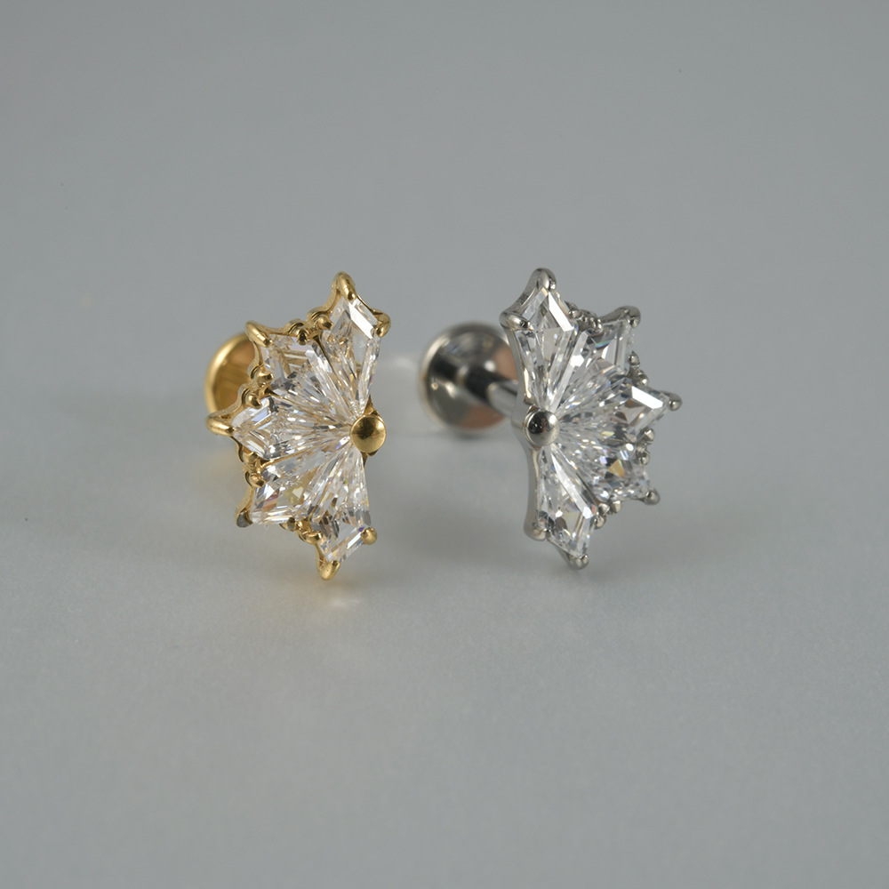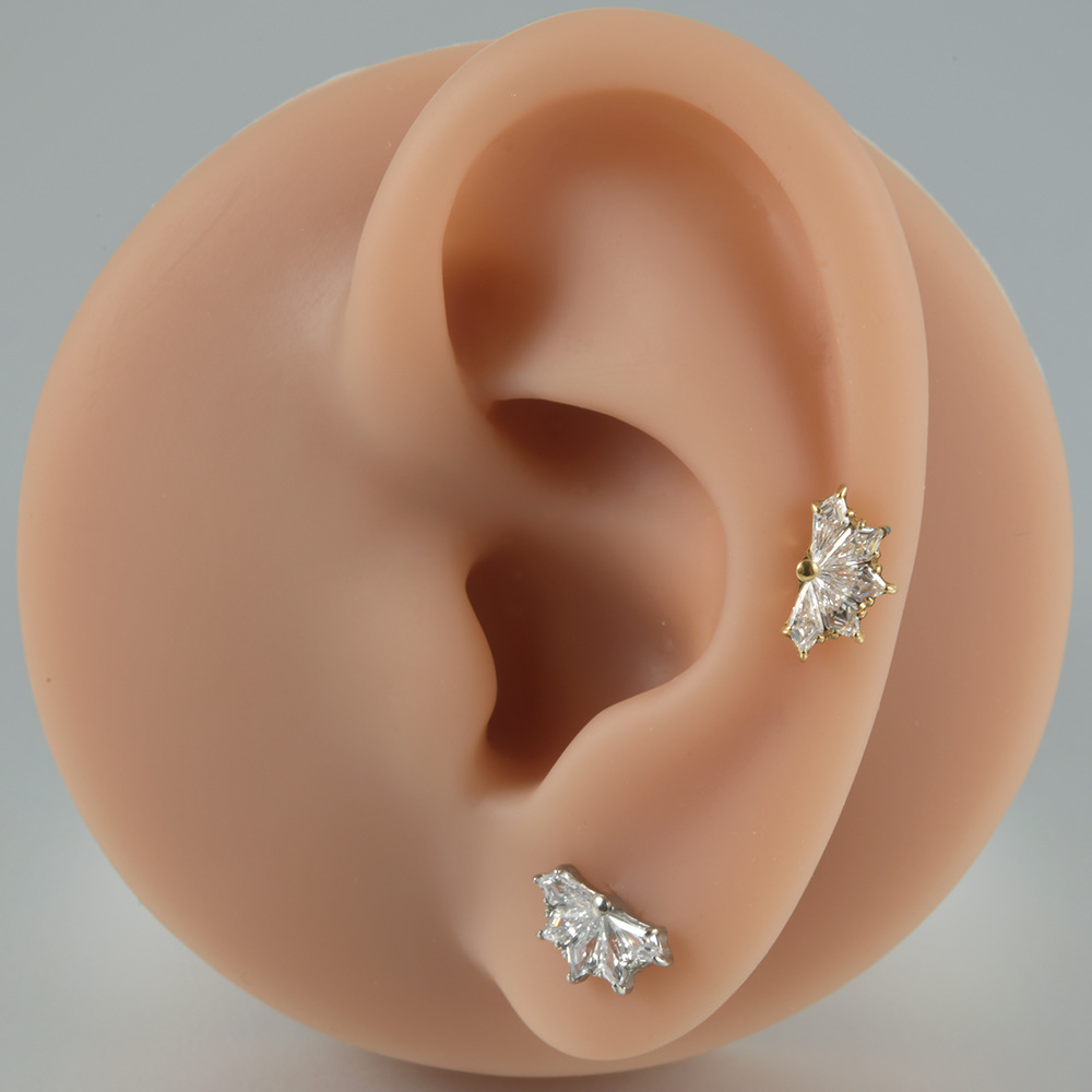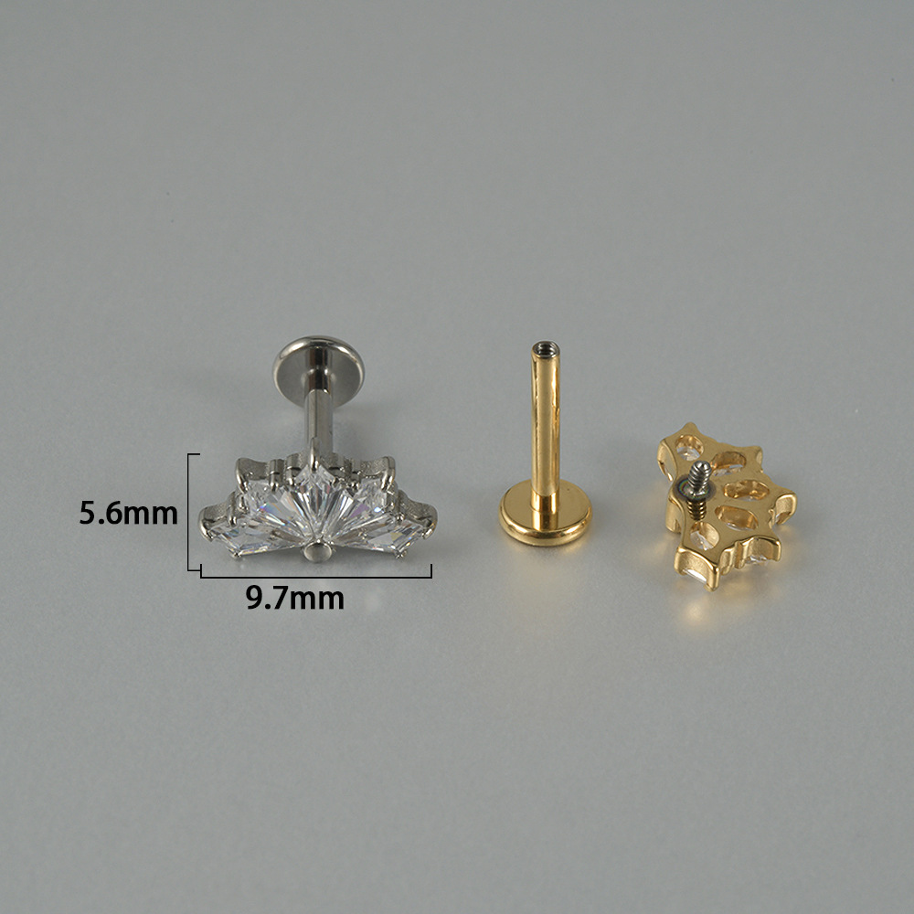 Cross-border F136 titanium internal thread inlaid zircon fan-shaped lip nail G23 titanium new fashion ear studs personalized piercing jewelry