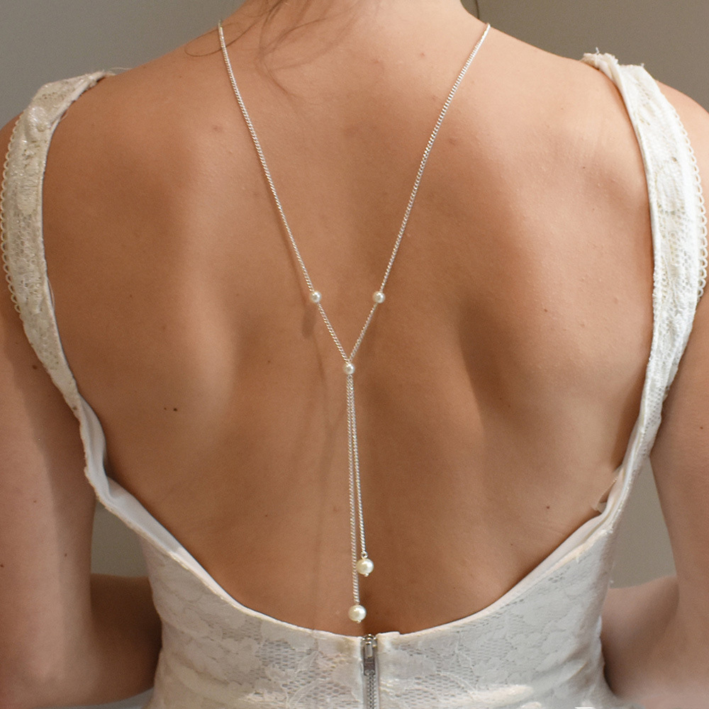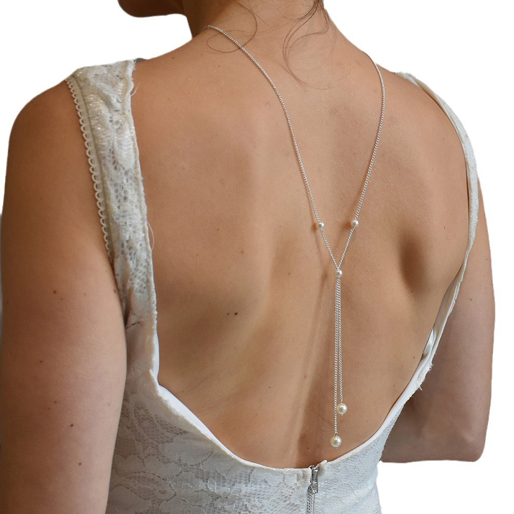 Cross-border fashion bride pearl back chain sexy simple wedding necklace body chain jewelry Back chain