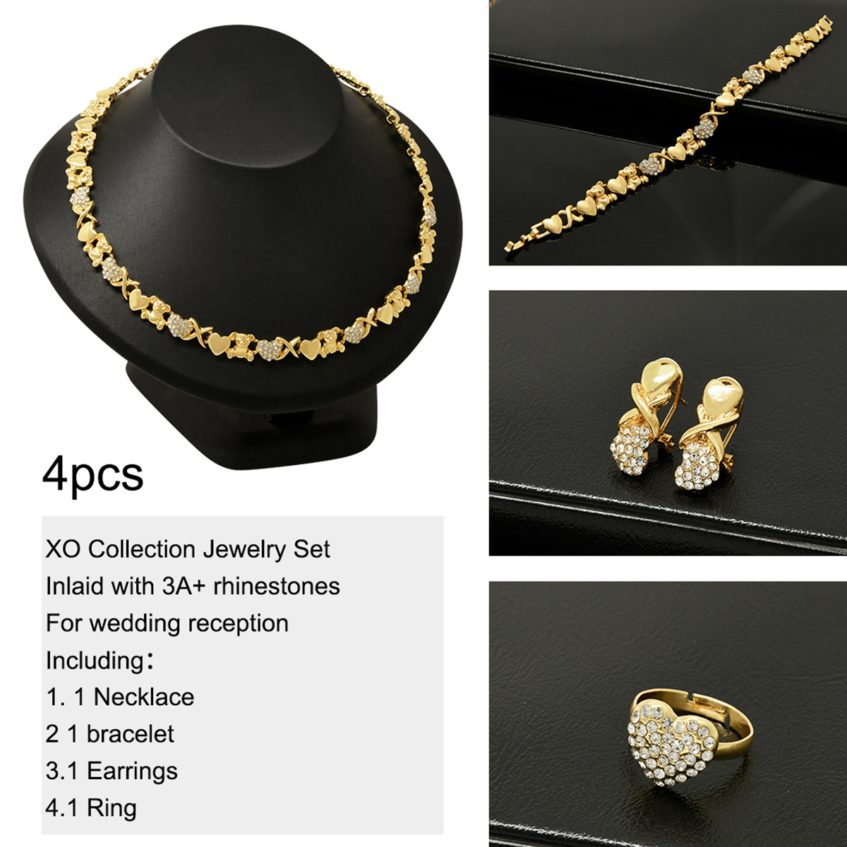 Cross-Border fashion classic new bridal jewelry four-piece set wedding banquet Joker jewelry factory direct sales