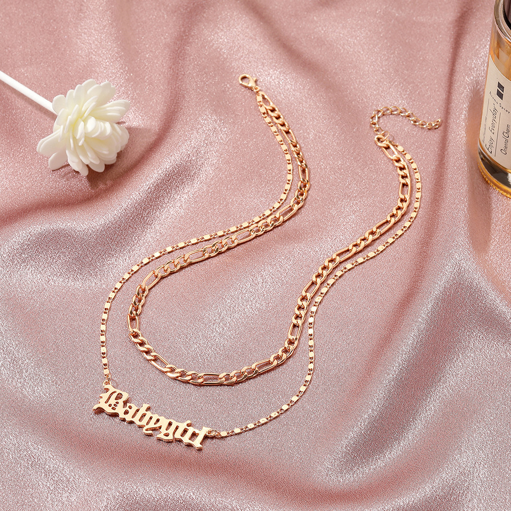 | nameOriginal | Cross-Border fashion creative double BABYGIRL English letter necklace women simple personality punk pendant wholesale |