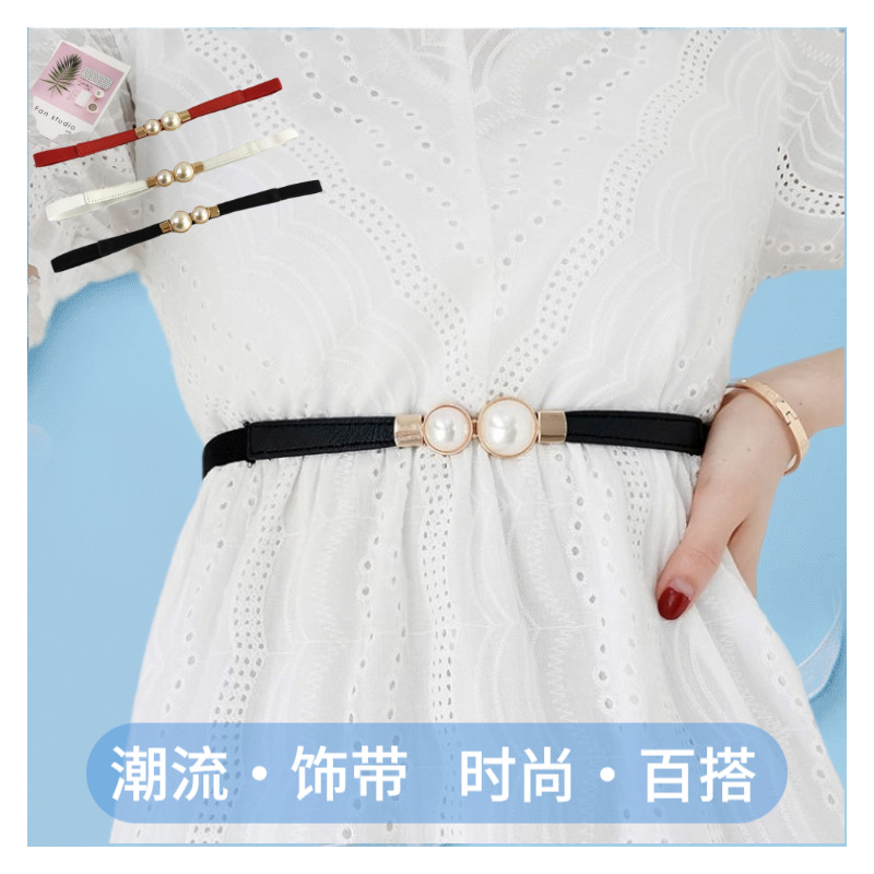 | nameOriginal | Cross-Border fashion elastic elastic black pearl belt women's all-match dress thin belt in stock wholesale |