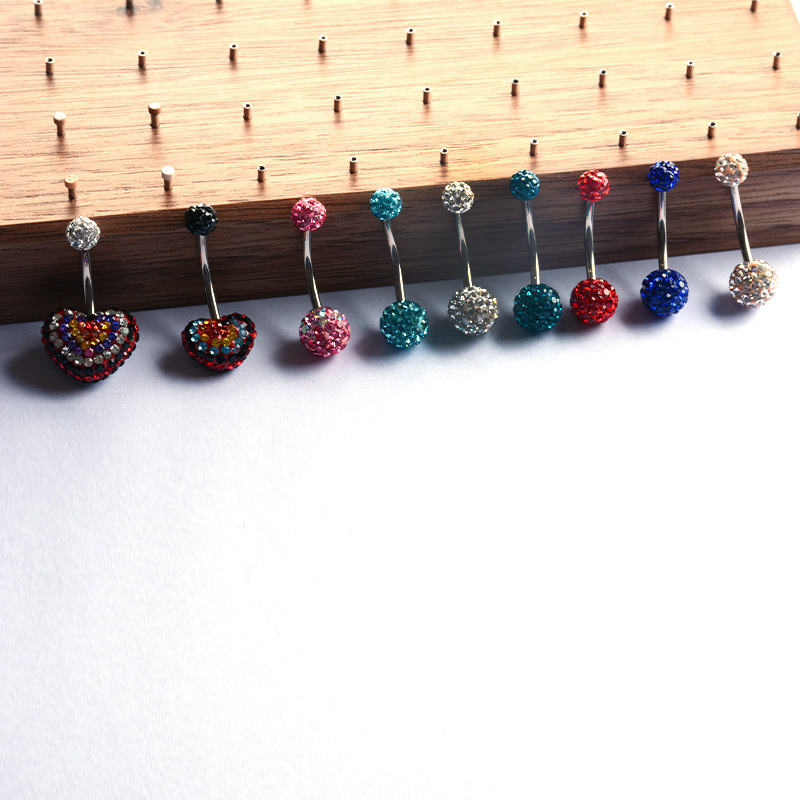 | nameOriginal | Cross-border fashion F136 titanium alloy Shambhala full diamond navel nail ball peach heart European and American puncture jewelry navel ring |