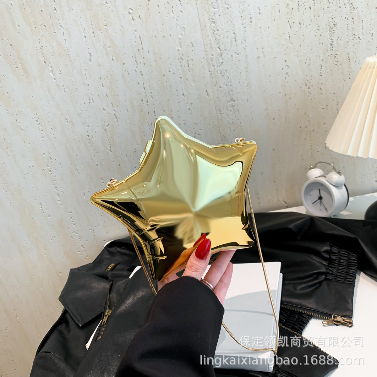 | nameOriginal | Cross-border fashion five-pointed star bag 2024 new fashion mouth red envelope women's bag acrylic plastic box bag gold  |