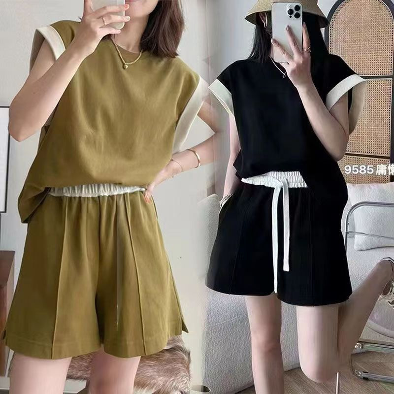 | nameOriginal | Cross-border Fashion Hong Kong Style Casual suit Women's Summer 2024 New Slimming Age-reducing Short-sleeved Shorts Sports Two-piece Set |