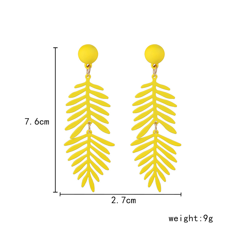 | nameOriginal | Cross-Border fashion long personalized earrings fashionable all-match exaggerated color spray paint long fir leaf earrings |