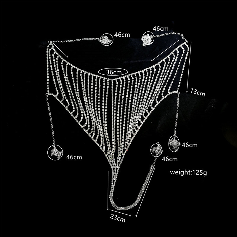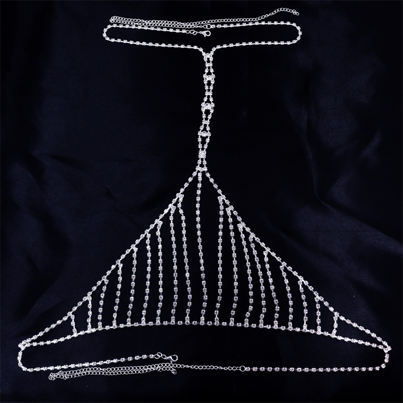 | nameOriginal | Cross-Border fashion rhinestone body chain suit sexy multi-layer necklace bra integrated chain thong Accessories Wholesale |
