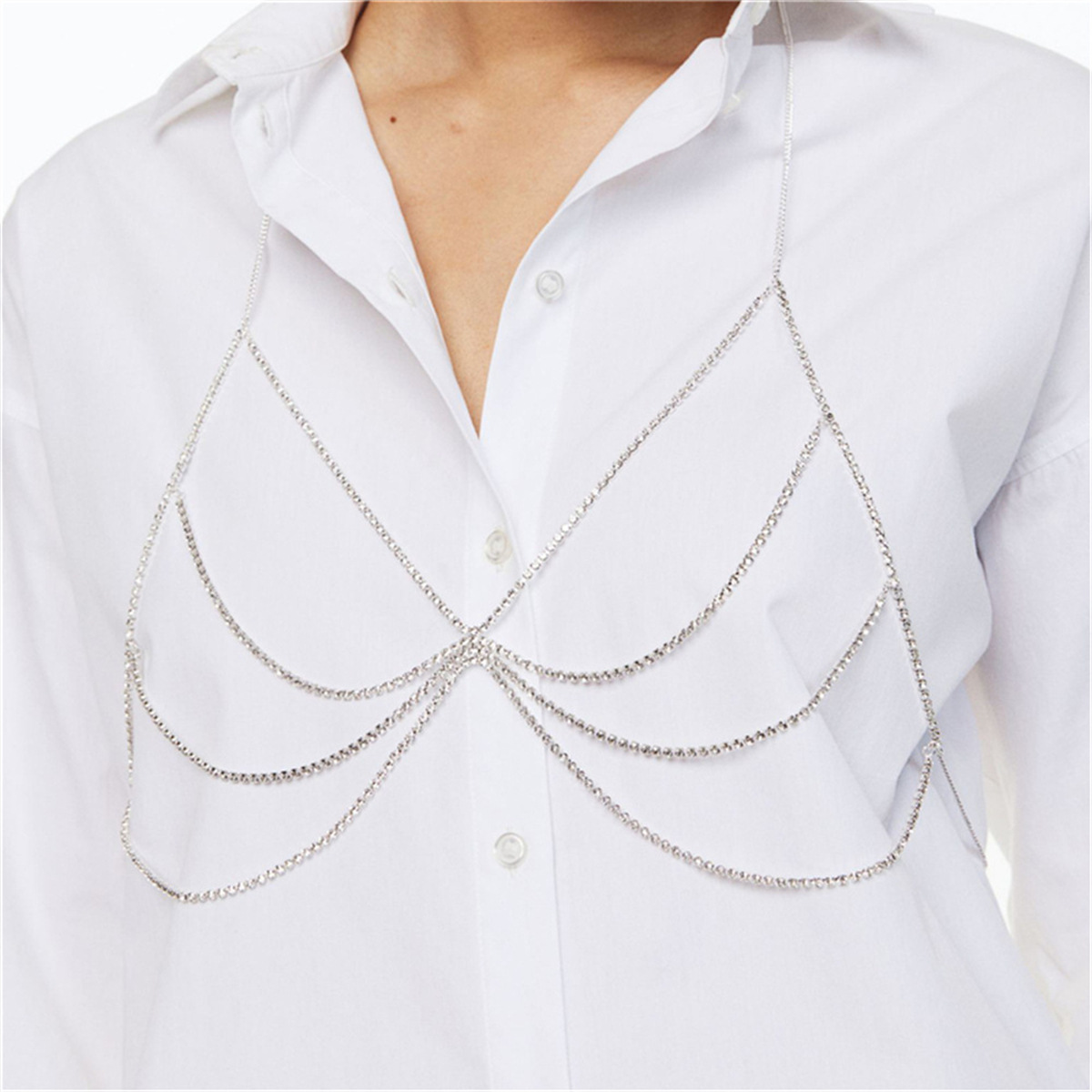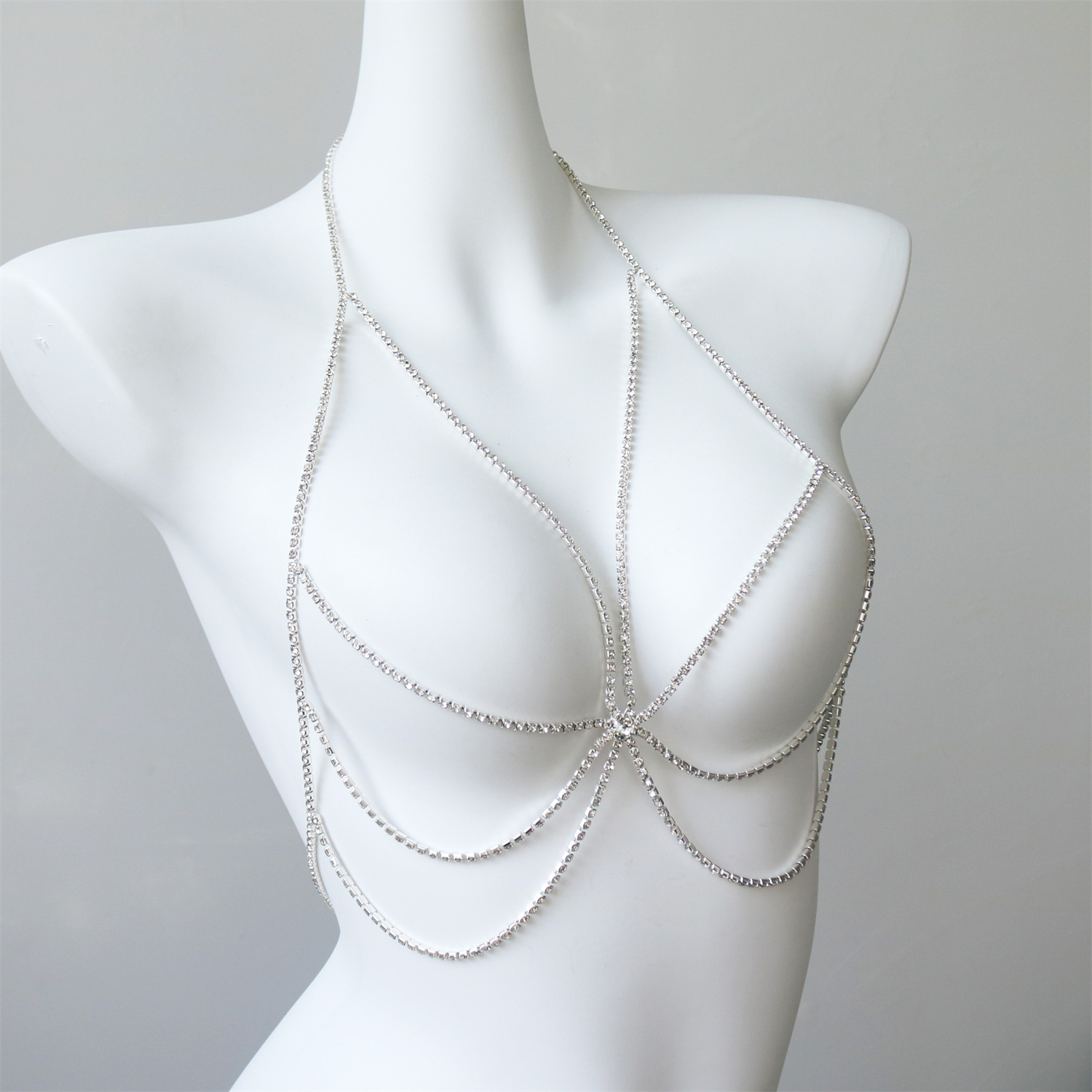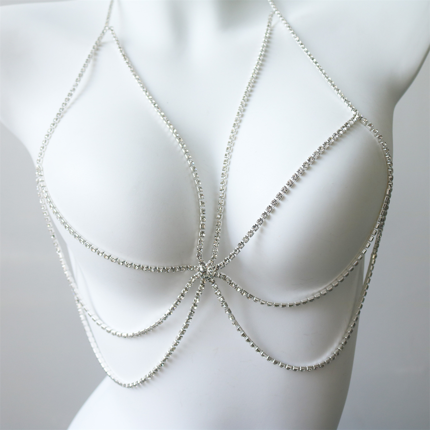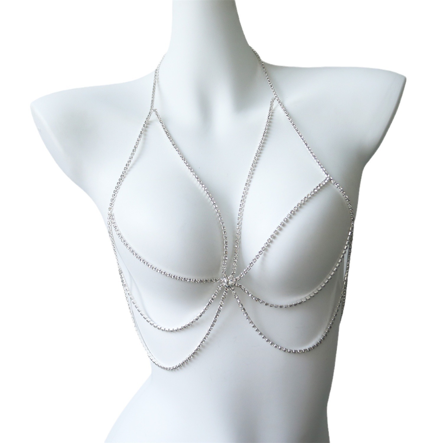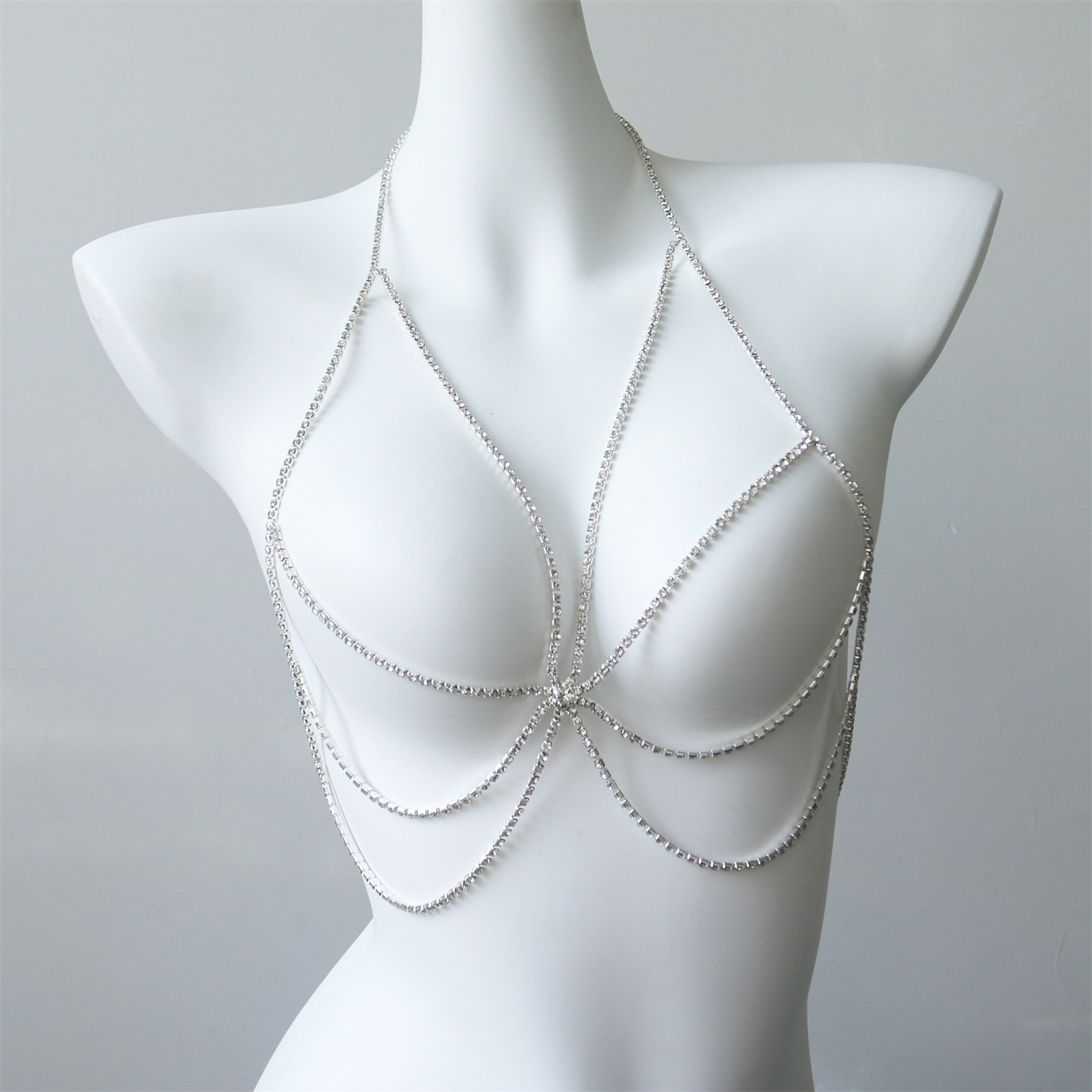 Cross-Border fashion sexy rhinestone halter bikini beach body chain personality multi-layer hot bra chain accessories