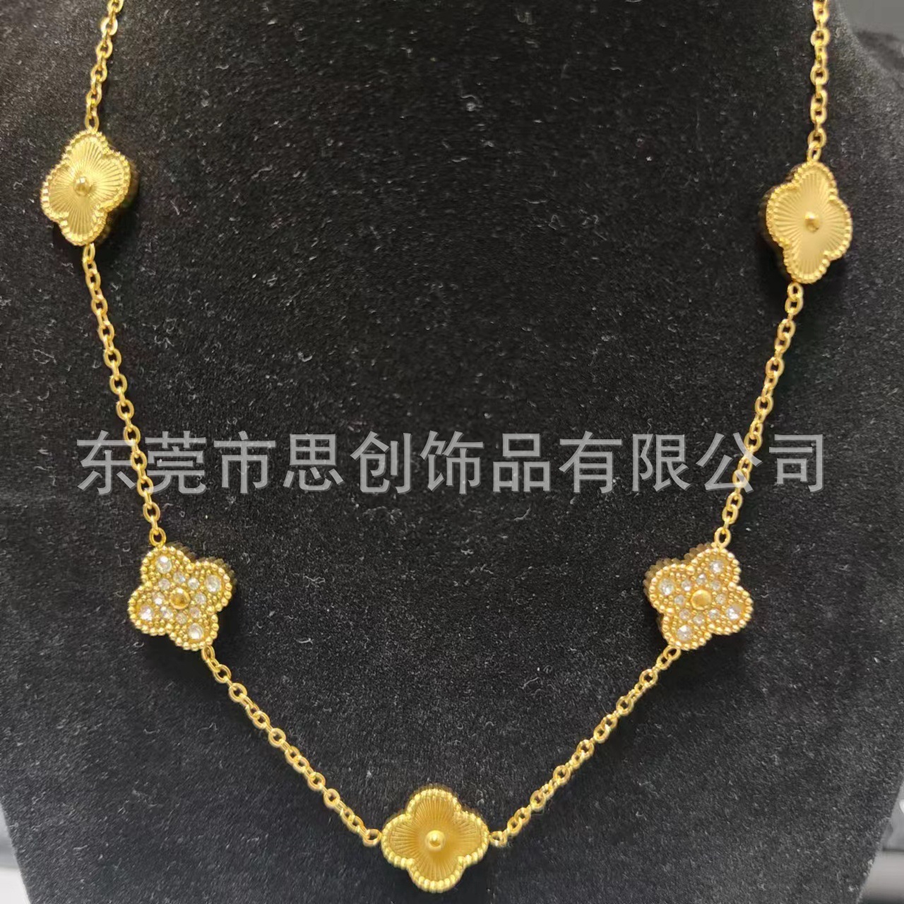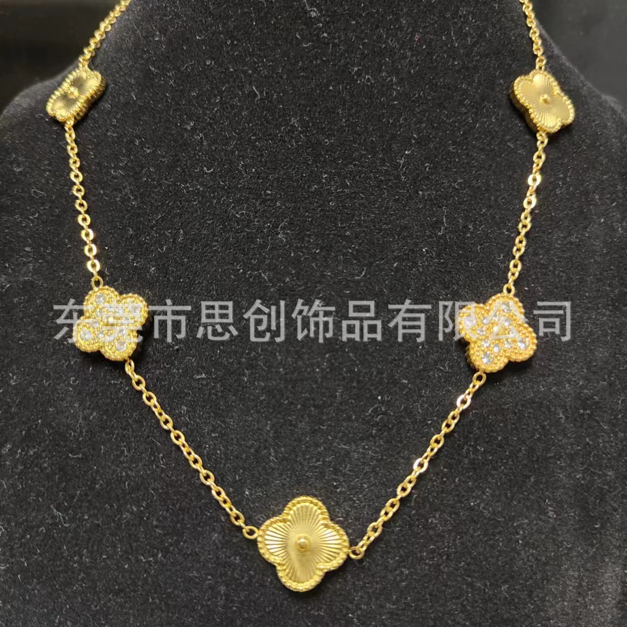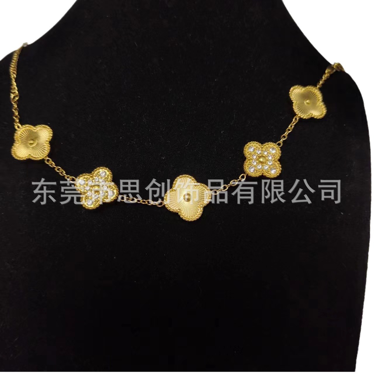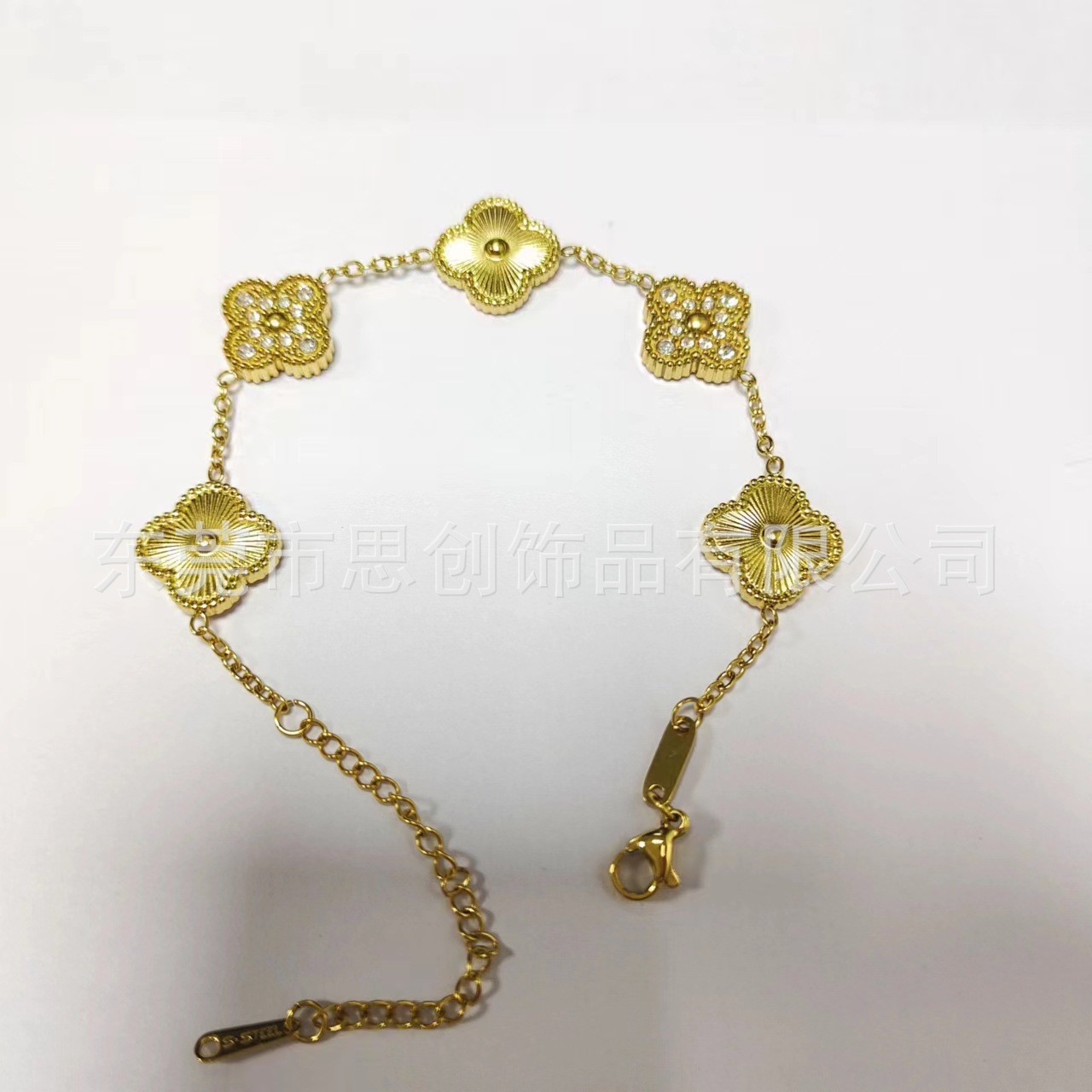 | nameOriginal | Cross-border fashion titanium steel four-leaf clover double-sided sticky diamond bracelet 18k gold niche all-match sticky diamond five-flower necklace |