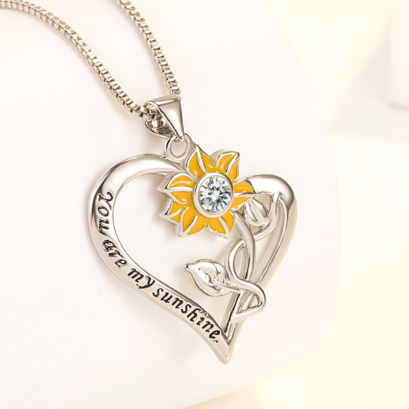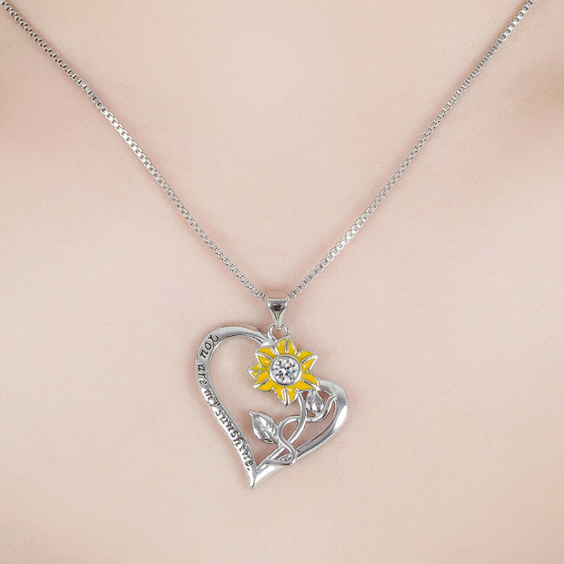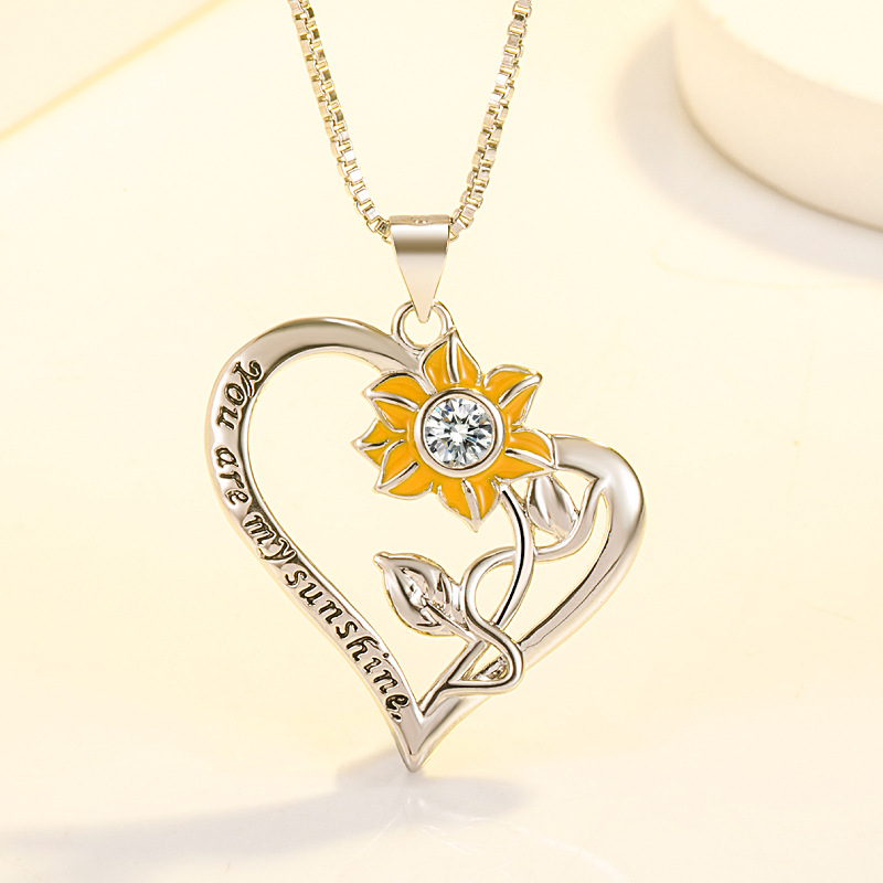 | nameOriginal | Cross-border flower sunflower pendant necklace double-layer lettering sunflower YOU ARE MY SUNSHINE necklace |